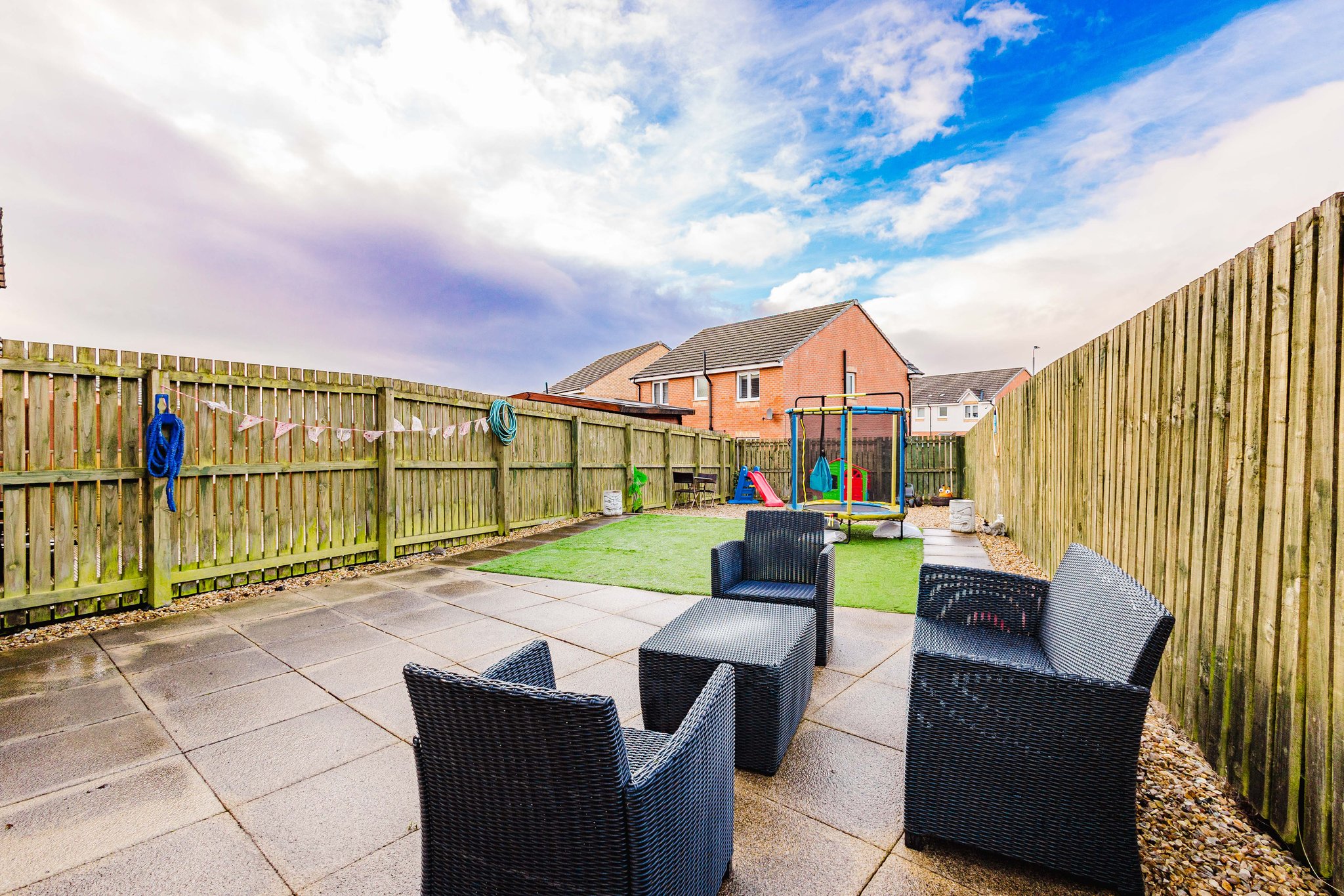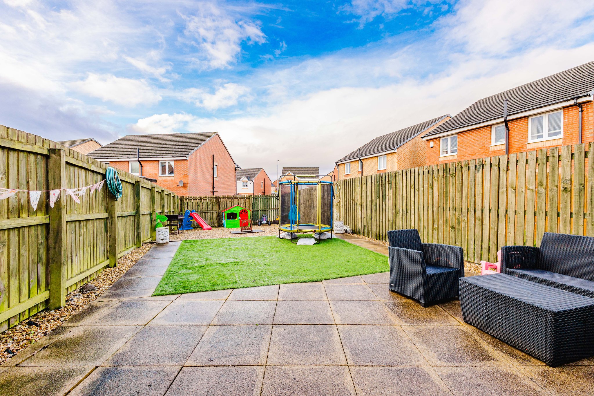 This property boasts spacious private gardens to the front and rear, the front garden has been laid to mono block allowing for ample off street parking and bordered by a well manicured lawn whilst the rear garden offers an area laid to astro turf, an area laid to chips and a paved patio perfect for al fresco dining and entertaining.