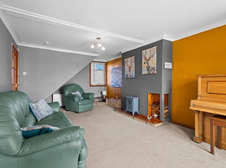 3.60m x 5.87m (11′ 10″ x 19′ 3″) Generously proportioned main apartment boasting bright contemporary decor, feature brick fireplace, ceiling coving, fitted carpet, a double glazed window to the front, double glazed patio doors leading to the sun room and a carpeted staircase leading to the upper level.
