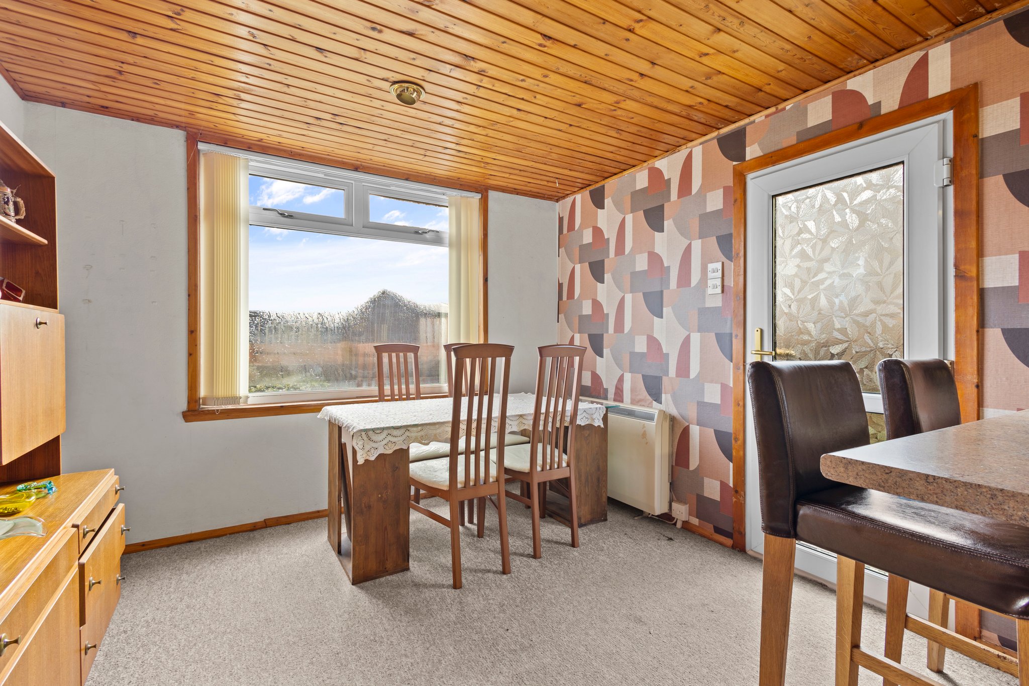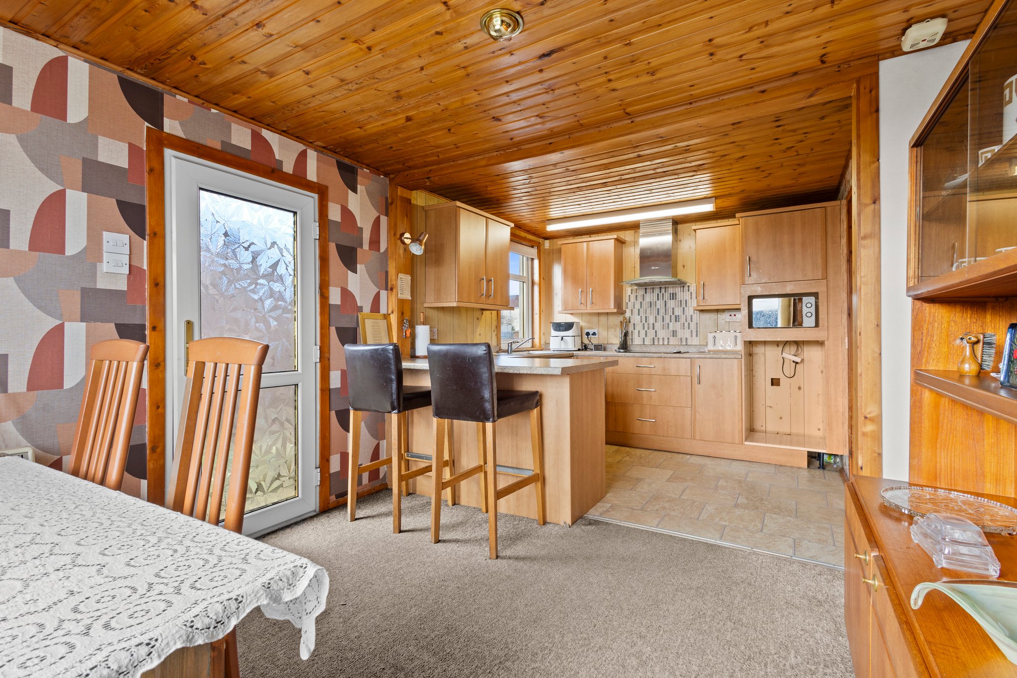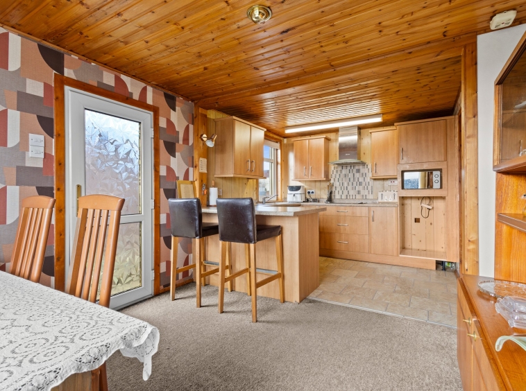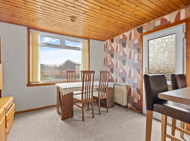 2.79m x 2.51m (9′ 2″ x 8′ 3″) 3.12m x 3.08m (10′ 3″ x 10′ 1″) Spacious dining sized kitchen comprising of ample wall and base storage cupboards, complimentary work surface, integrated electric hob, plumbing and space for a cooker, washing machine and fridge freezer, stainless steel sink and drainer, modern decor, breakfast bar seating area, plentiful space for dining table and chairs, vinyl flooring in Kitchen area with a fitting carpet in the dining area, double glazed window to the rear and a door leading to the garden.