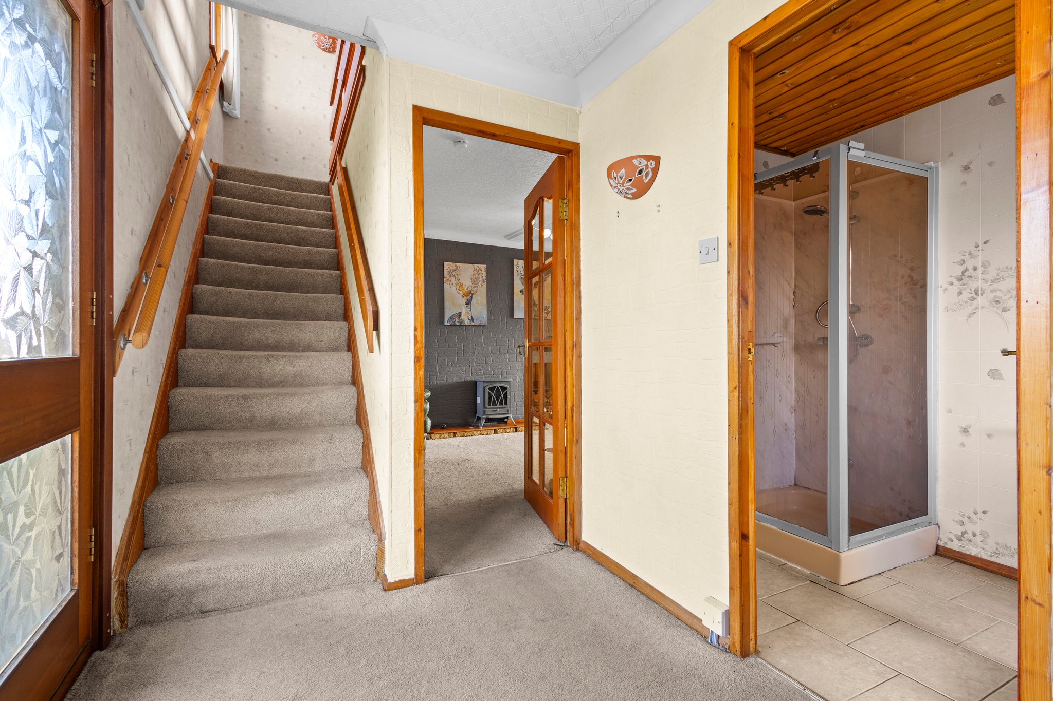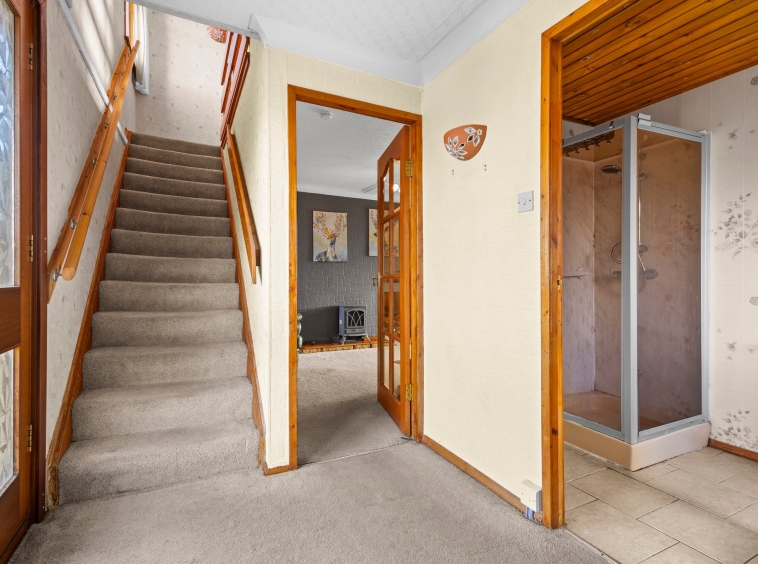 2.34m x 1.76m (7′ 8″ x 5′ 9″) Access is given to a spacious welcoming hallway offering neutral decor, practical storage space, ceiling coving and fitted carpet. The hallway gives access to the lounge and bathroom.