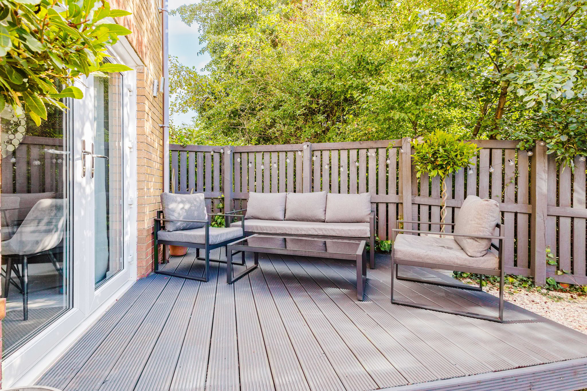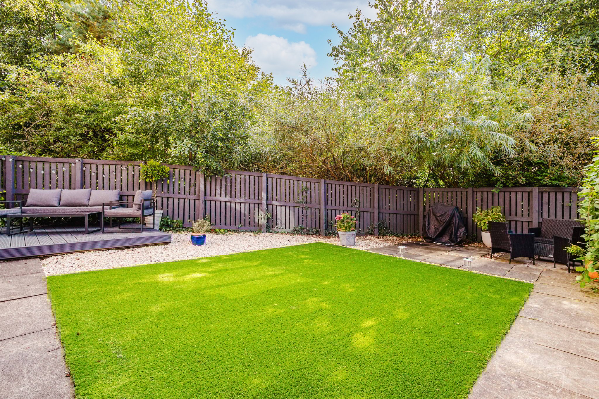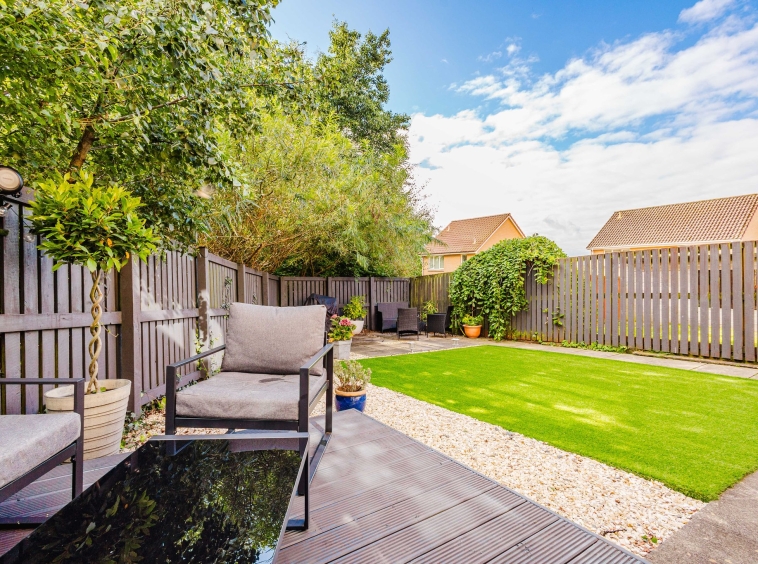 Positioned on a generous plot, this family villa boasts private garden grounds to the front and rear. The front gardens are complete with a well manicure lawn bordered by decorative chips and a large mono blocked driveway allowing for ample off street parking and leading to the garage. The rear gardens are landscaped comprising of an area laid to astro turf, decorative chips, a paved patio and an elevated decked patio area perfect for al fresco dining and entertaining with a leafy backdrop.