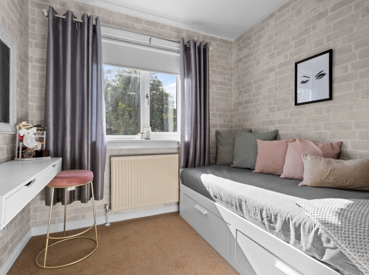 2.28m x 2.68m (7′ 6″ x 8′ 10″) Bedroom three is rear facing with a double glazed window overlooking the gardens, neutral decor and fitted carpet.