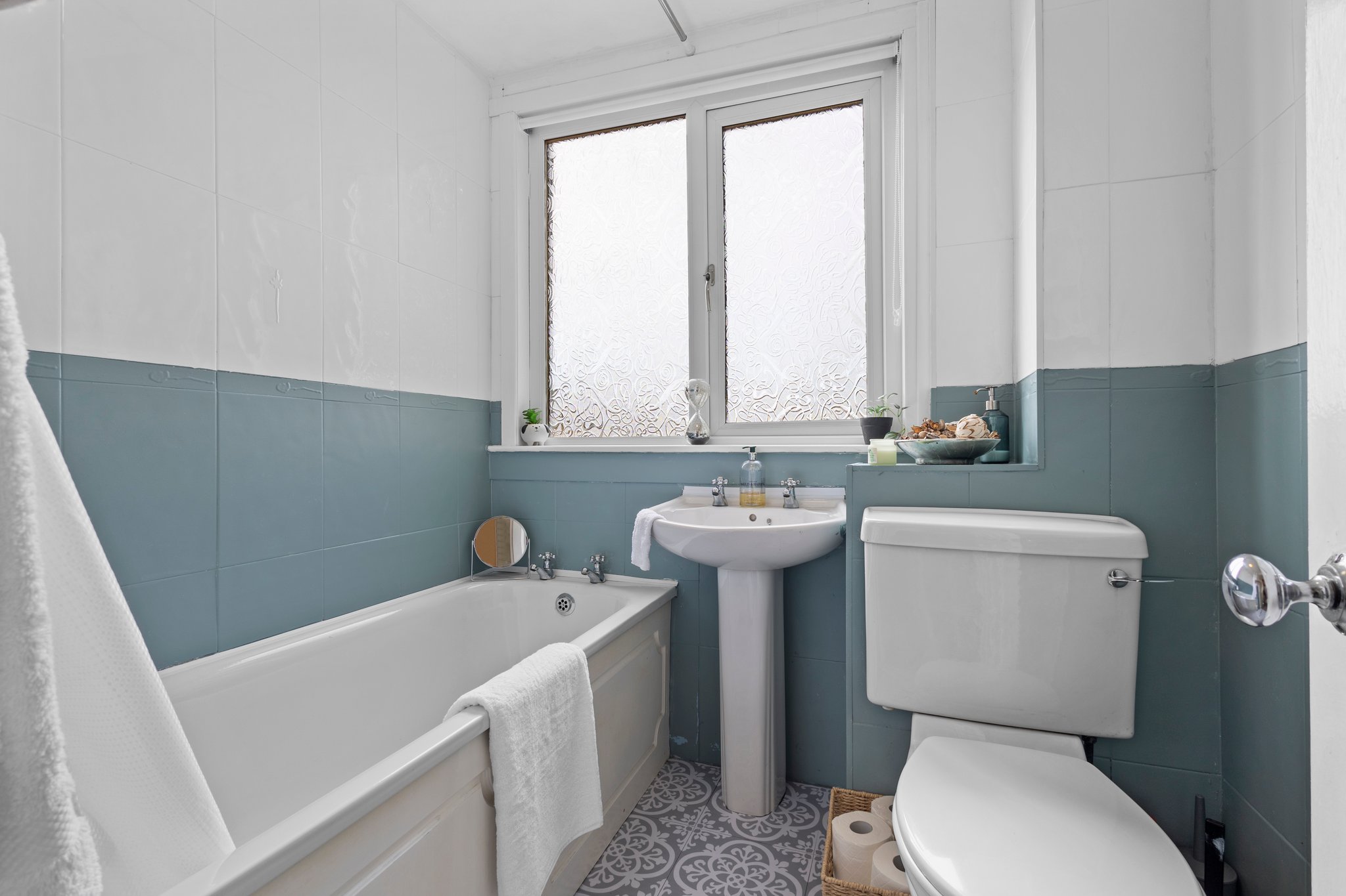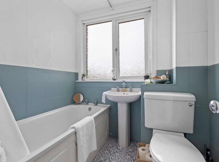 1.87m x 1.83m (6′ 2″ x 6′ 0″) Completing the accommodation is the three piece family bathroom suite comprising of wash hand basin, wc and bath with electric overhead shower. Modern fully tiled walls, vinyl flooring and double glazed opaque window to the rear.