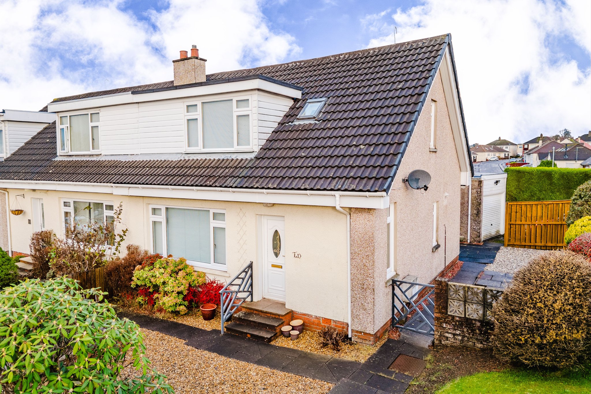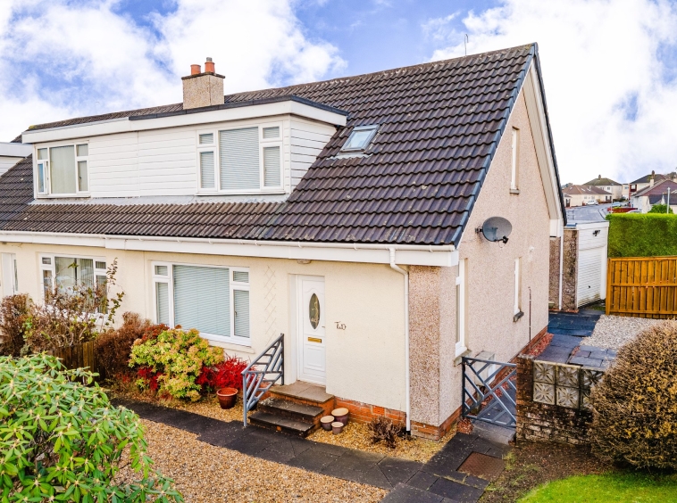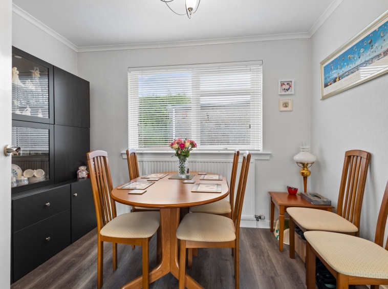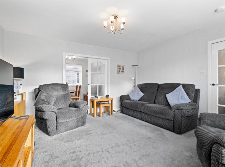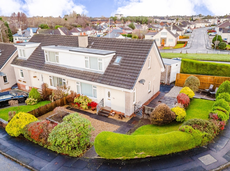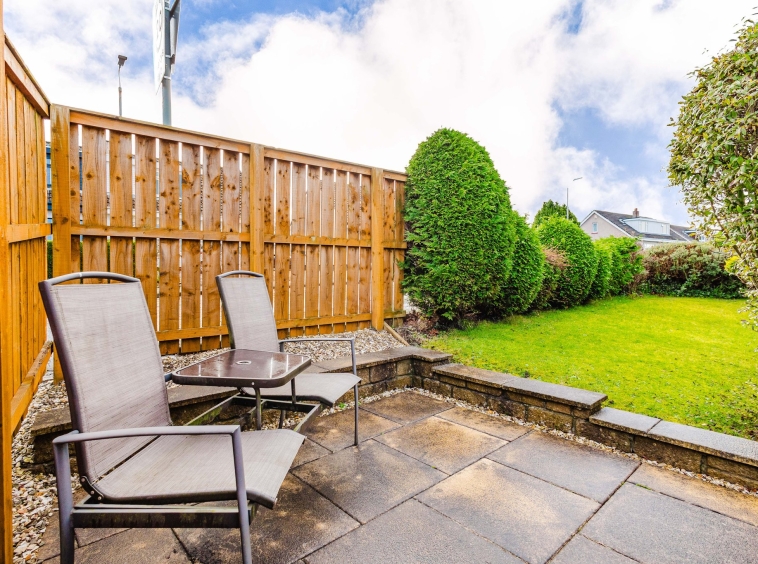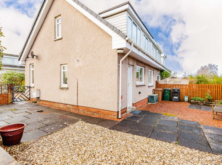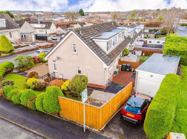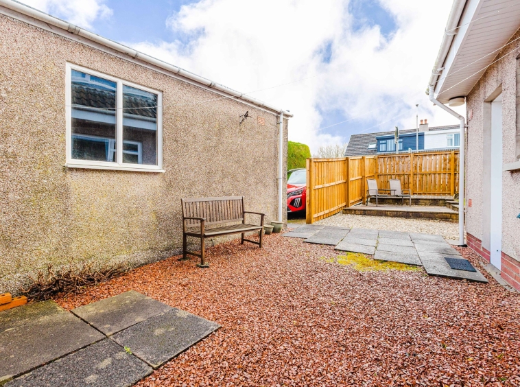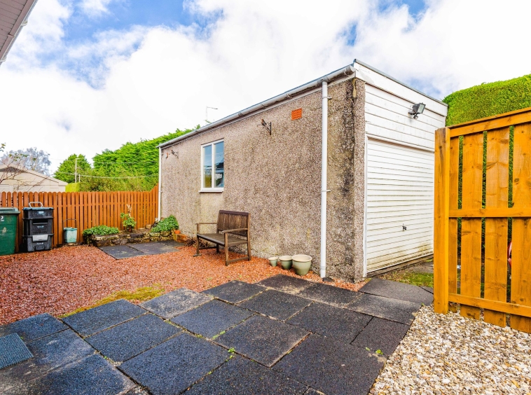 Positioned on a generous corner plot, this family villa boasts wraparound gardens to the front, side and rear. Private driveway to the side providing off street parking, leading to the detached garage with up and over door access. The front gardens are laid to chips with a generous lawn and paved patio to the side, bordered by a selection of hedging and shrubbery. The rear gardens are laid to chips with a fenced border.