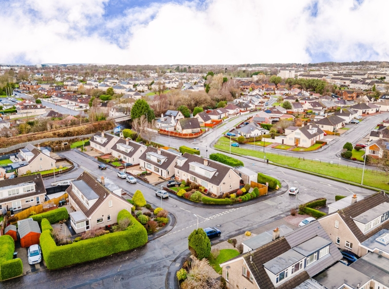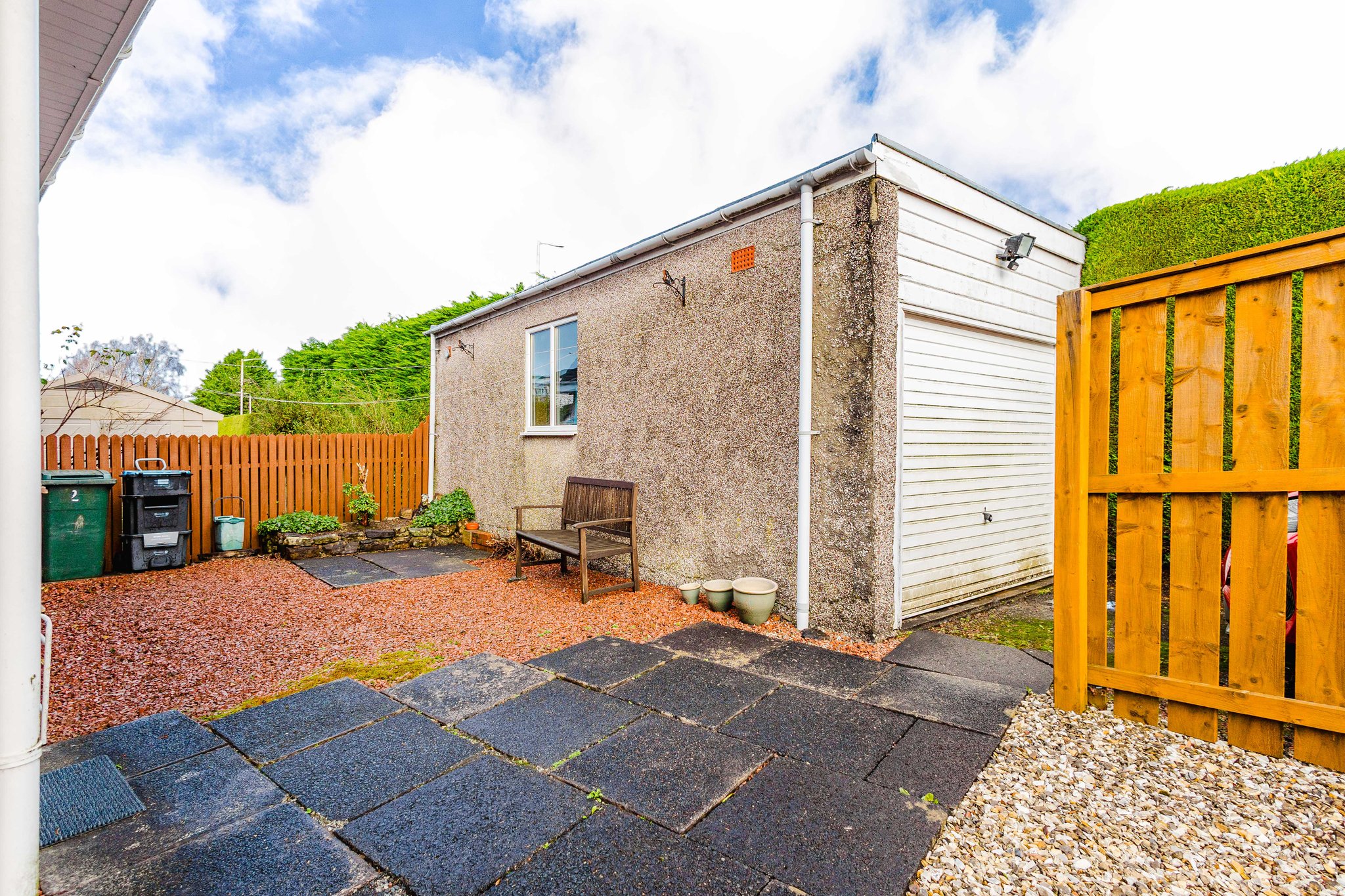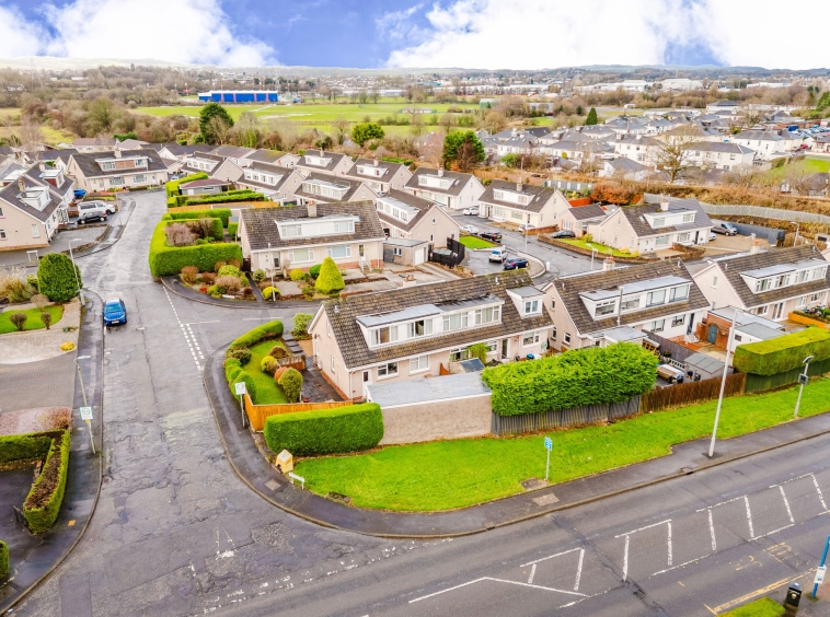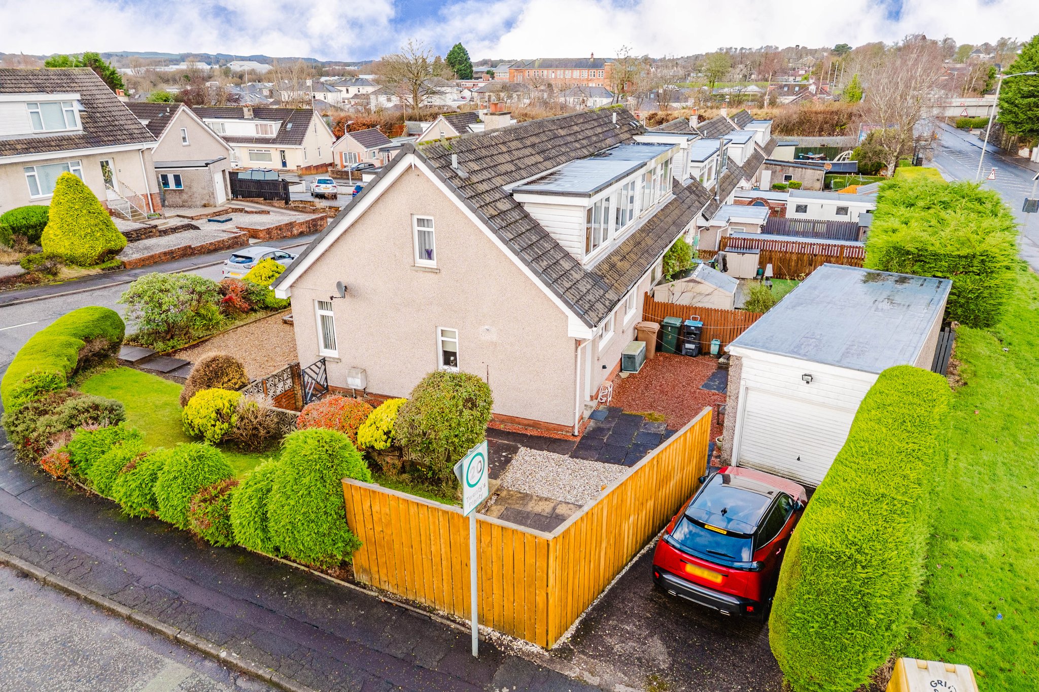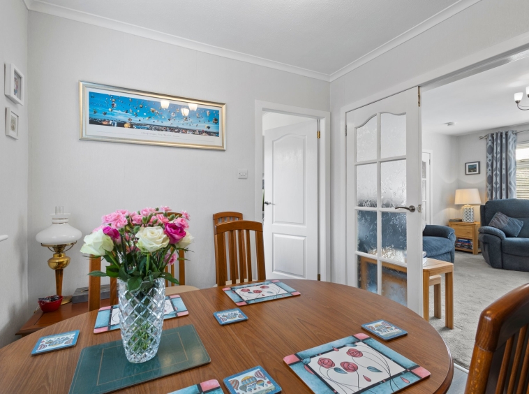Positioned on a generous corner plot, this family villa boasts wraparound gardens to the front, side and rear. Private driveway to the side providing off street parking, leading to the detached garage with up and over door access. The front gardens are laid to chips with a generous lawn and paved patio to the side, bordered by a selection of hedging and shrubbery. The rear gardens are laid to chips with a fenced border.