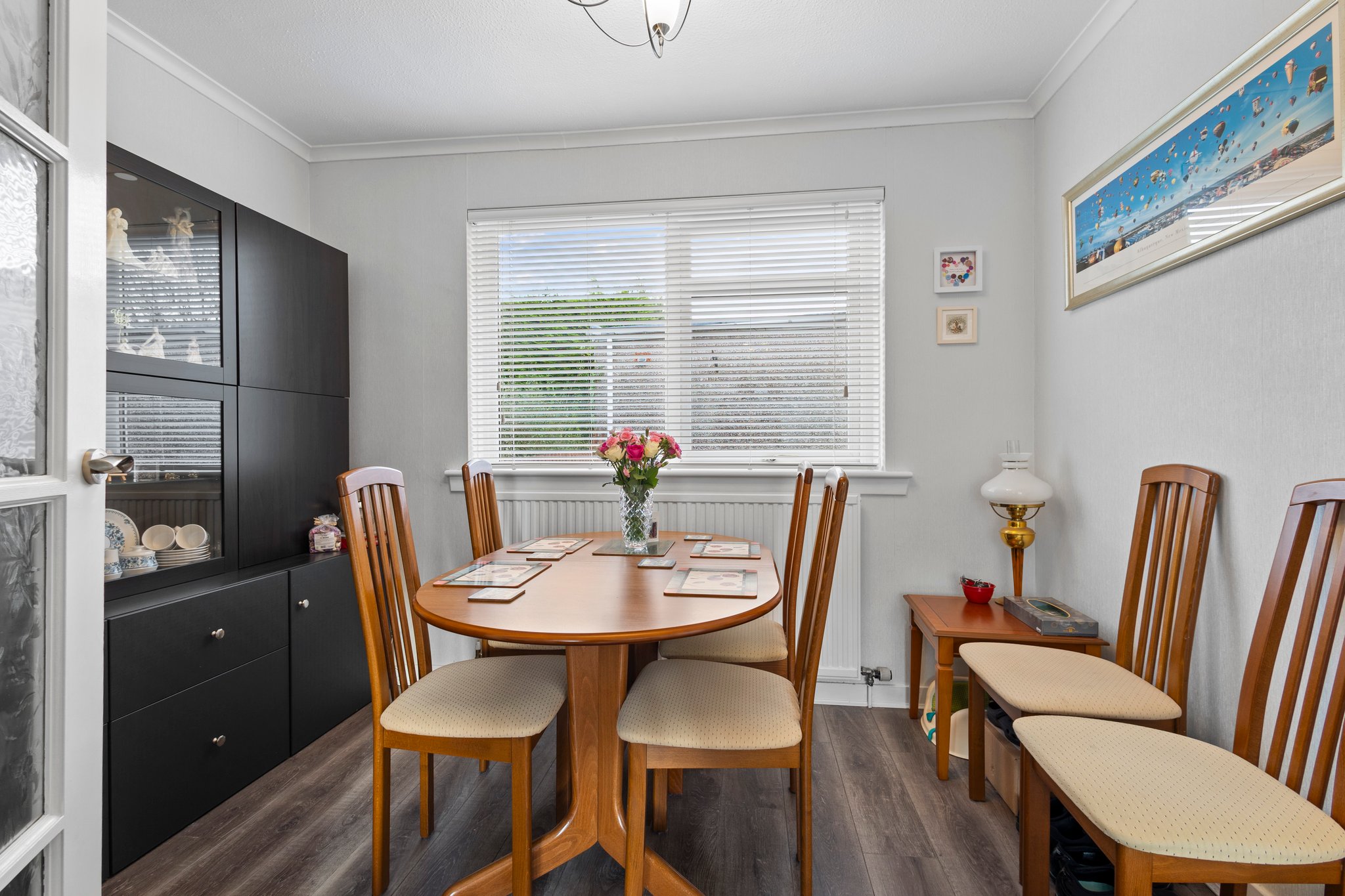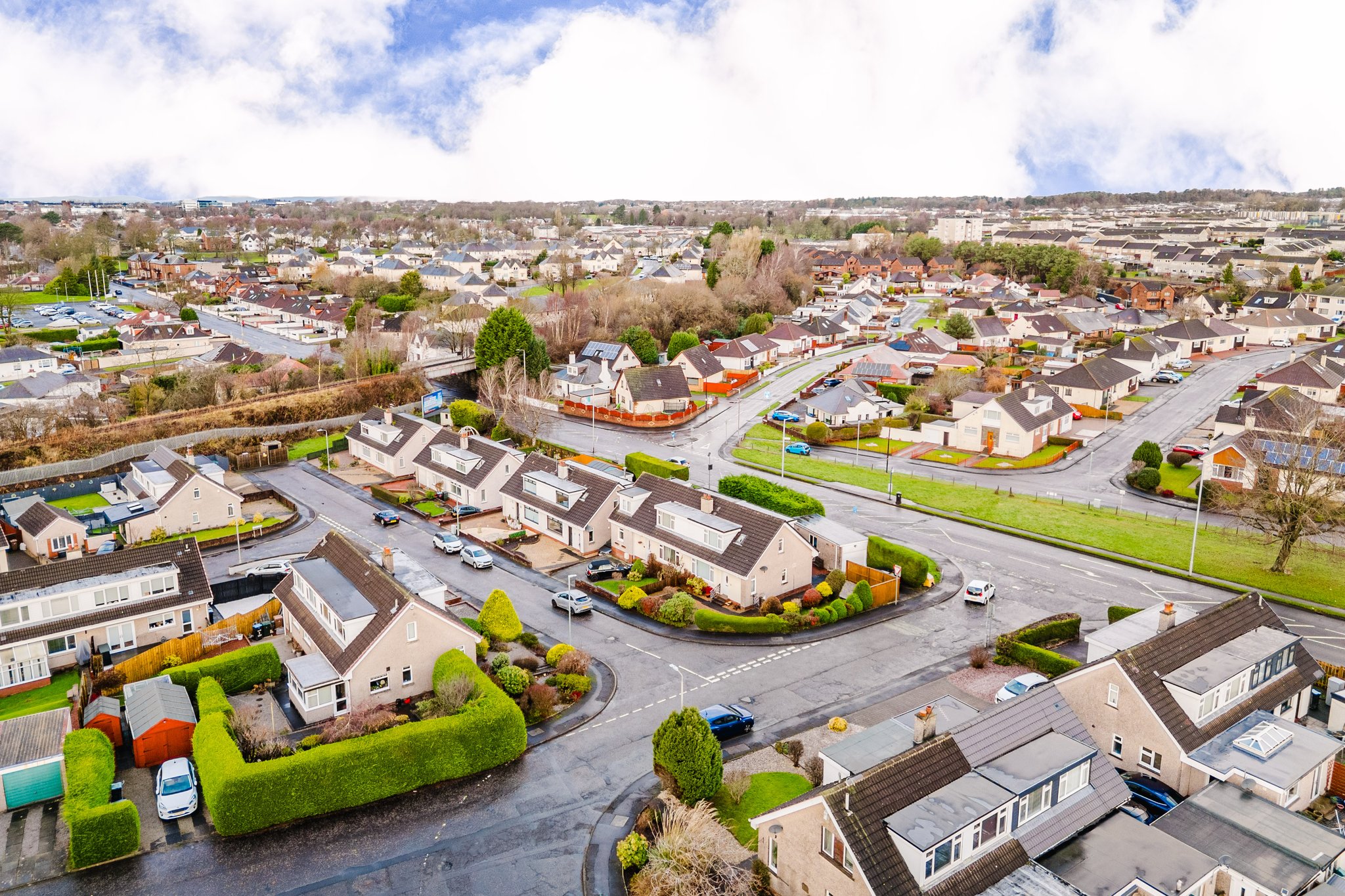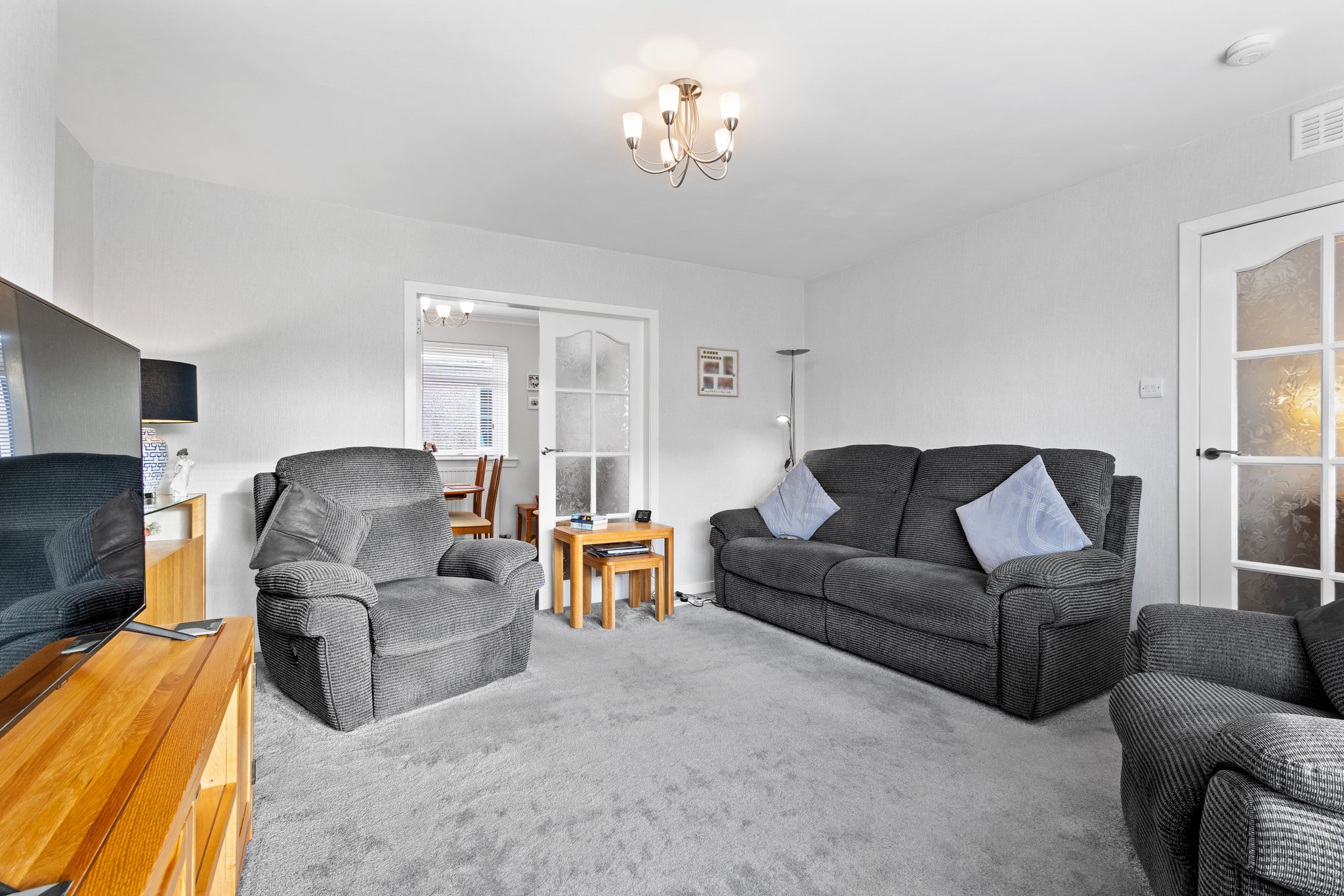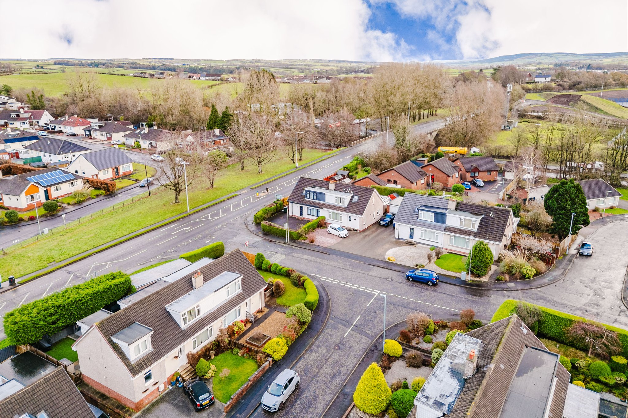 Positioned on a generous corner plot, this family villa boasts wraparound gardens to the front, side and rear. Private driveway to the side providing off street parking, leading to the detached garage with up and over door access. The front gardens are laid to chips with a generous lawn and paved patio to the side, bordered by a selection of hedging and shrubbery. The rear gardens are laid to chips with a fenced border.