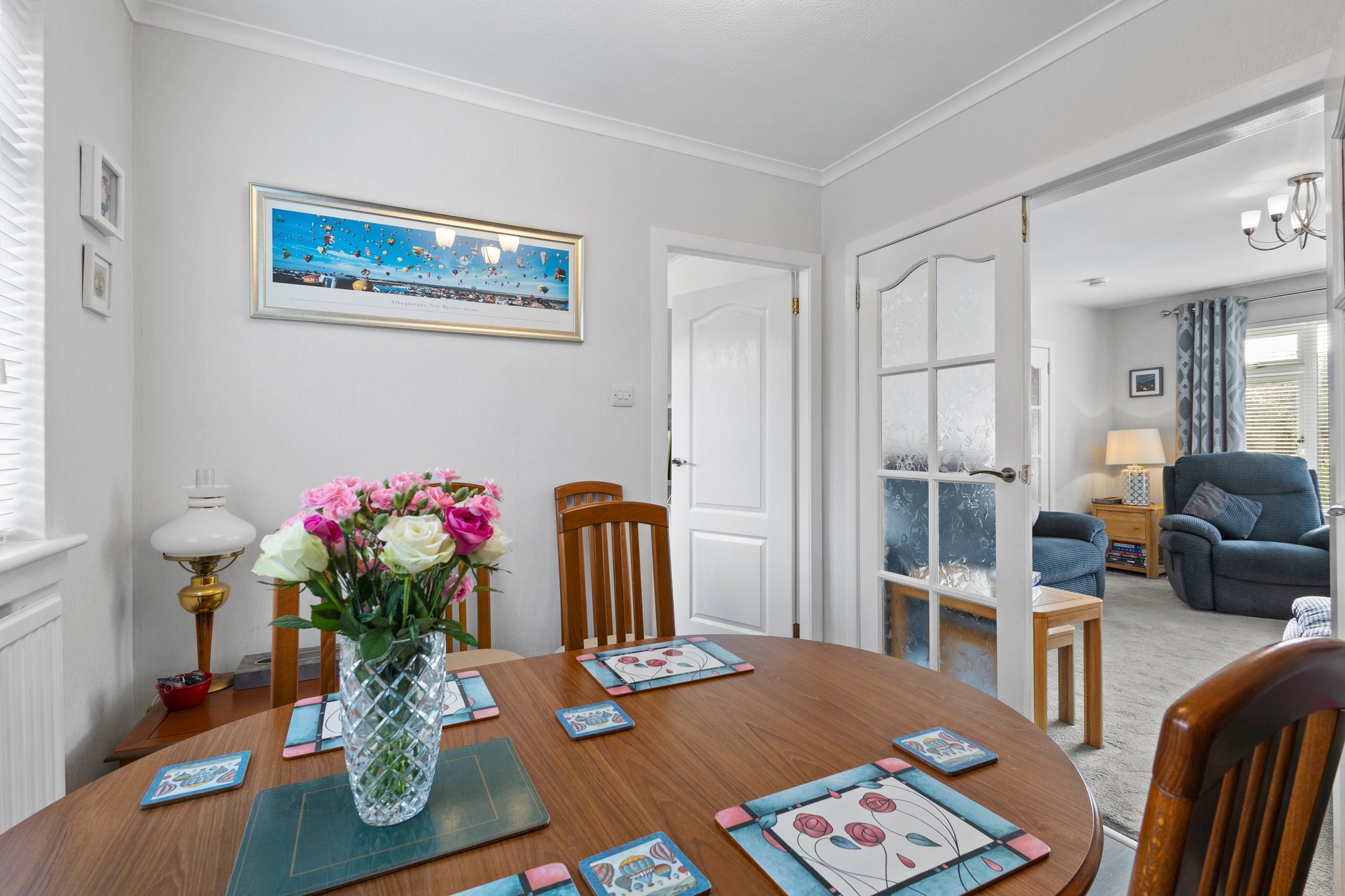 4.20m x 4.19m (13′ 9″ x 13′ 9″) Generously proportioned main apartment offering neutral decor, plentiful space for free standing furniture, fitted carpet and a double glazed window to the front. Double door access to dining room.