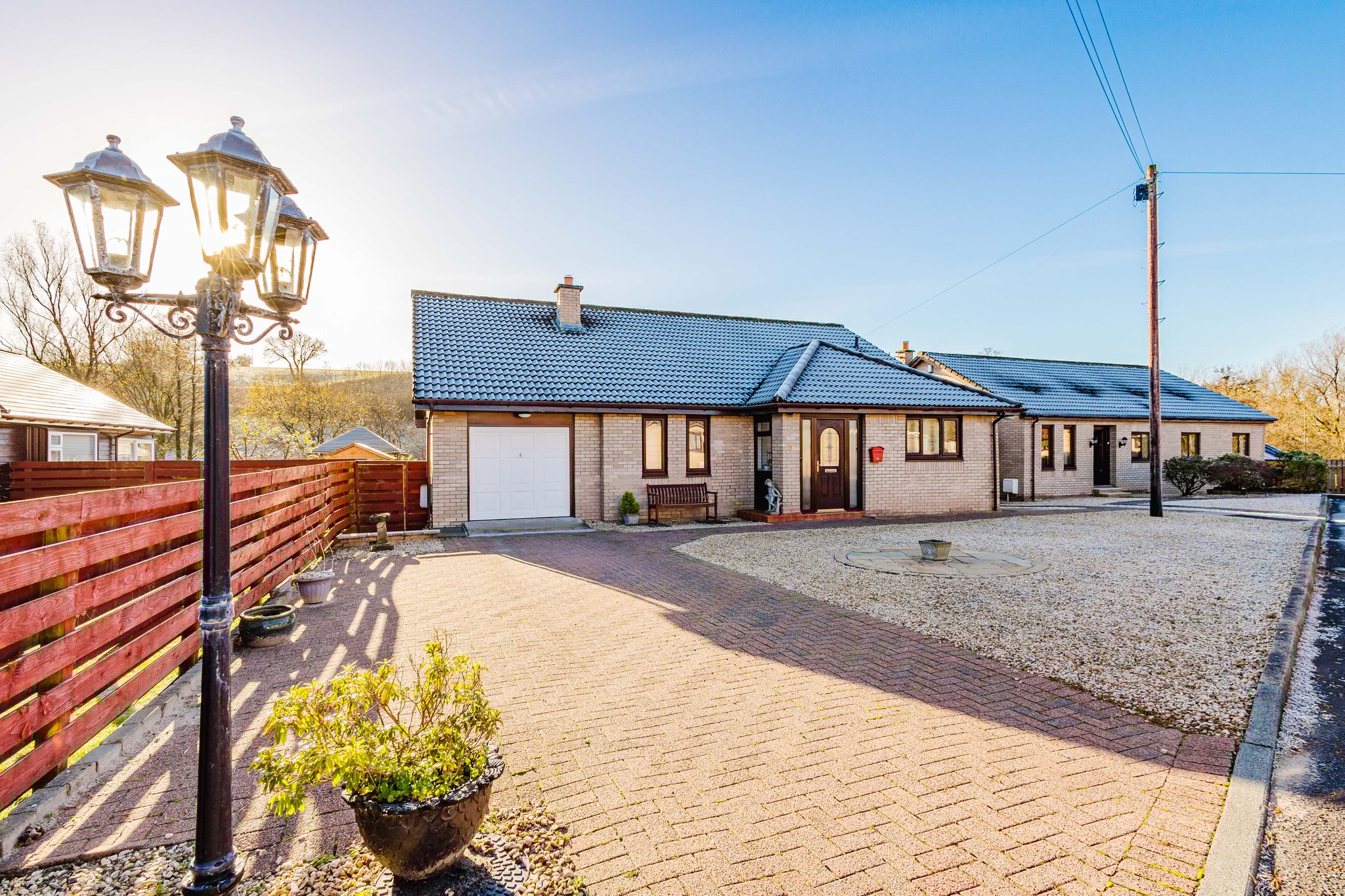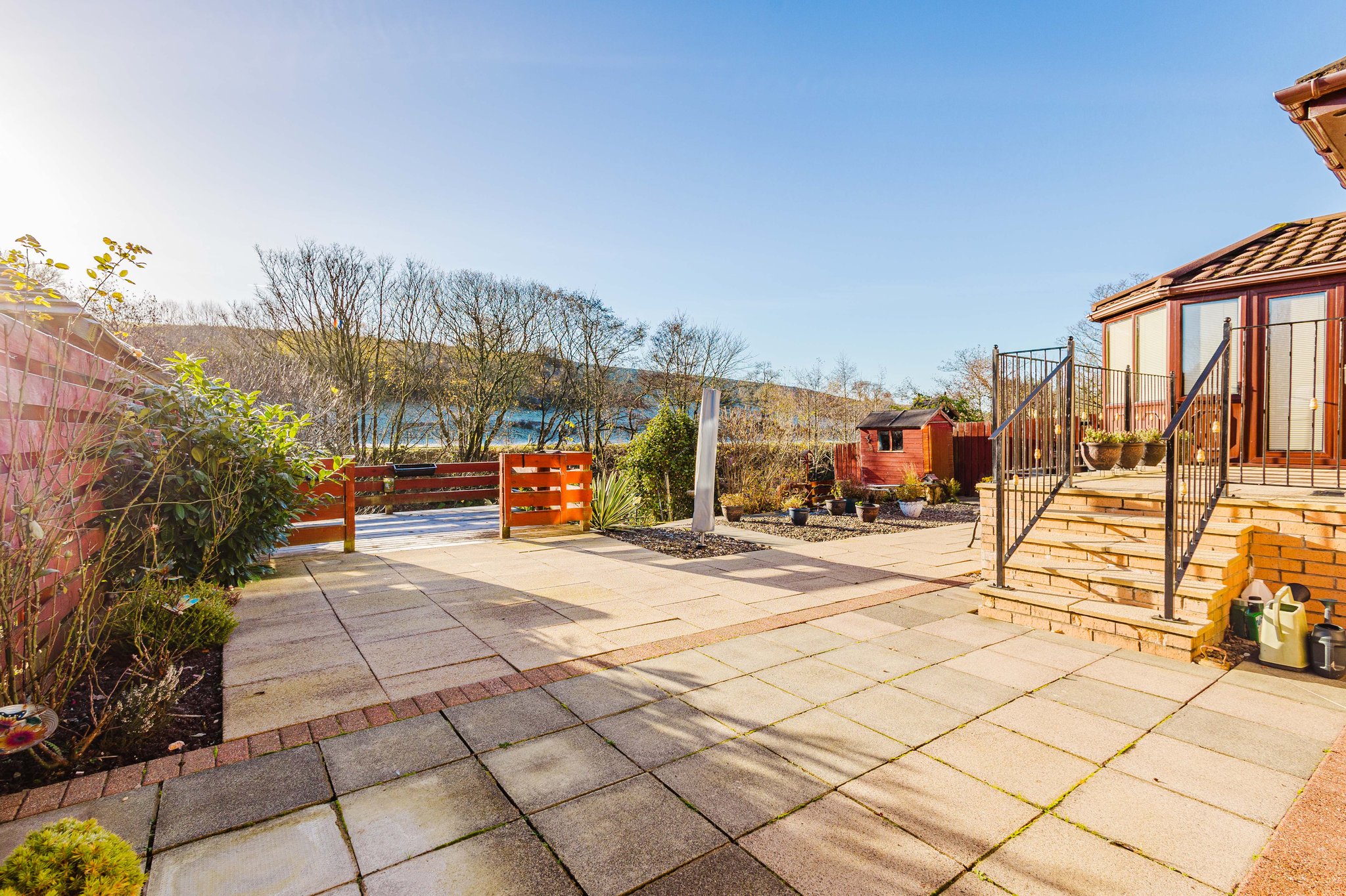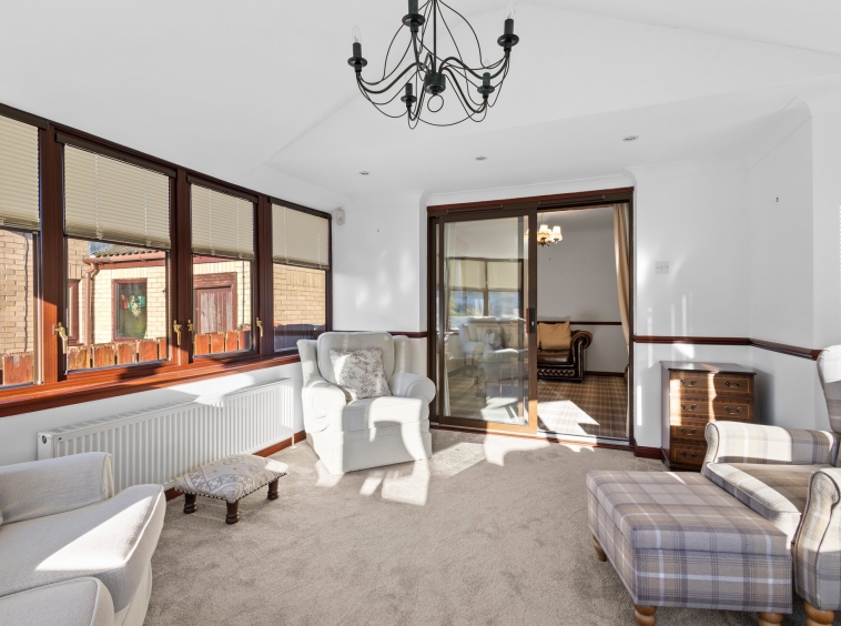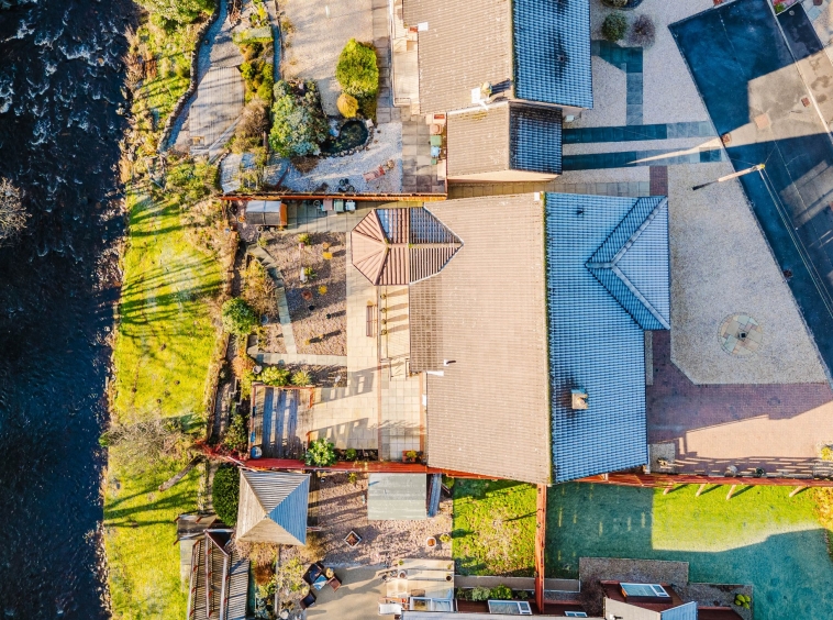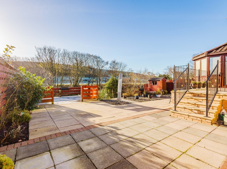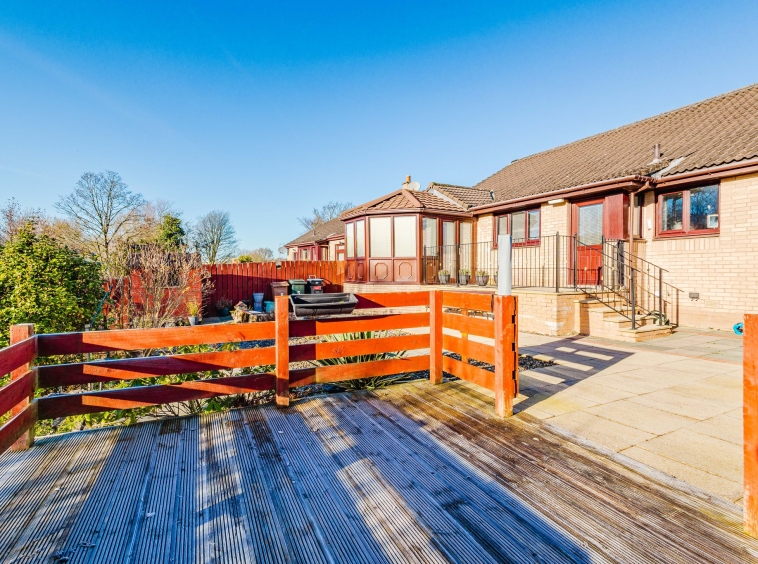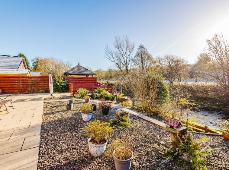 This property enjoys beautifully landscaped wrap around gardens. The front garden features a generous area laid with decorative chips and a sweeping mono blocked driveway offering excellent off street parking and access to the garage. The rear garden has been thoughtfully designed for low maintenance living, boasting attractive paved patio areas, mature planting, a chipped section and a superb decked terrace overlooking the River Irvine – the perfect spot to relax and soak in the stunning outlook.