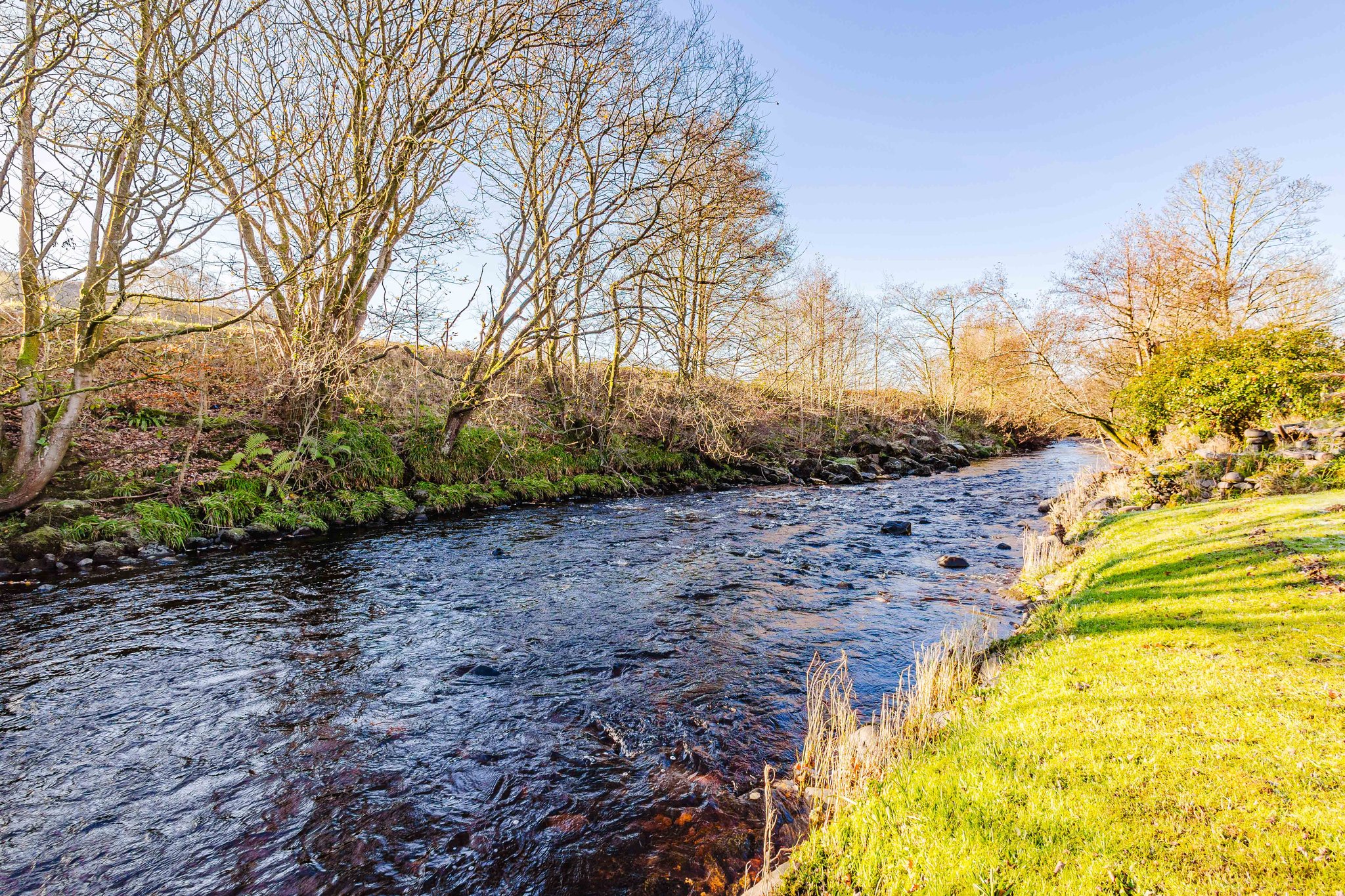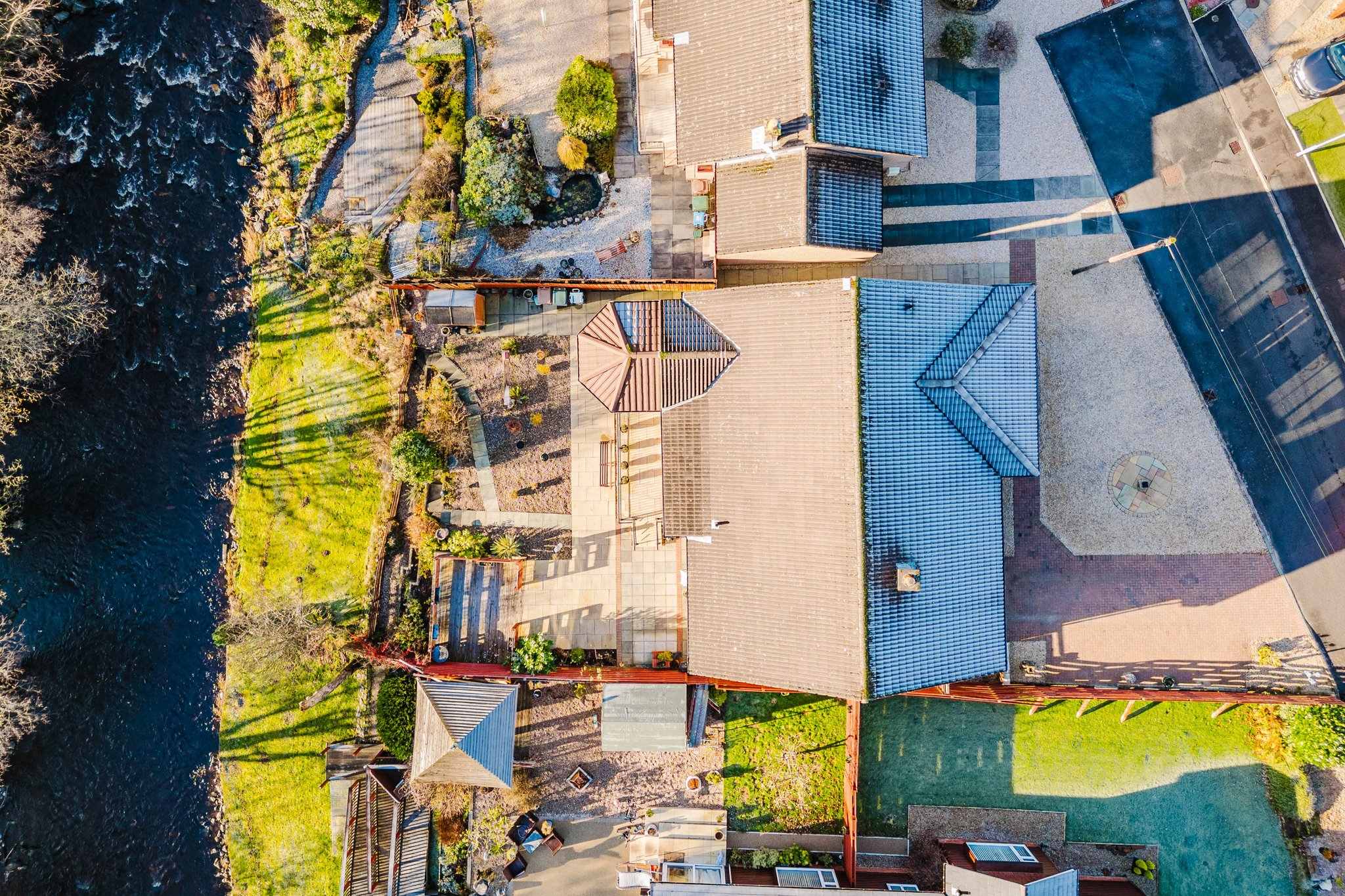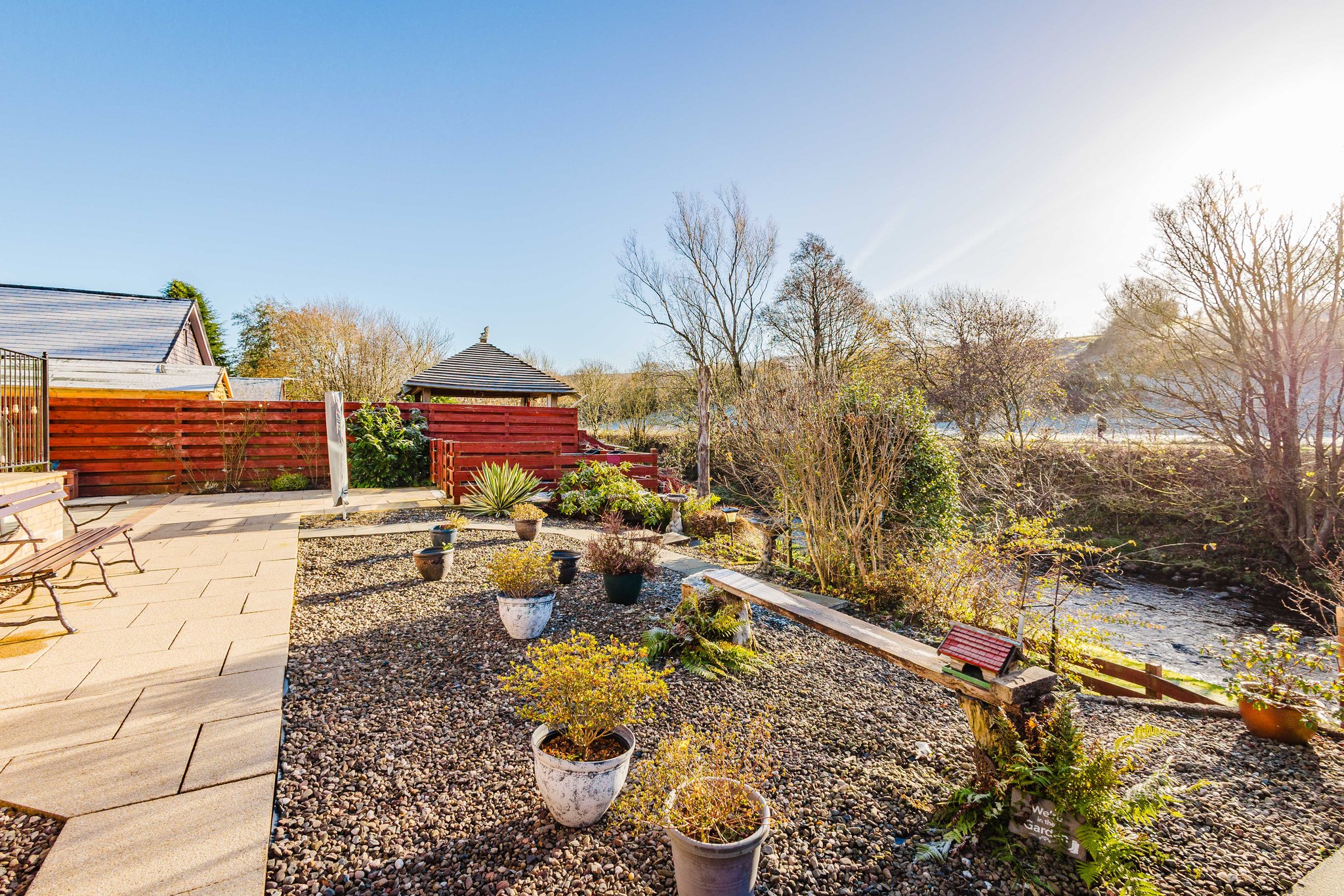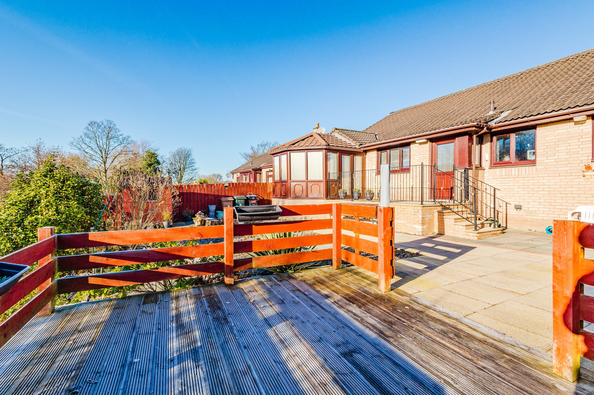 This property enjoys beautifully landscaped wrap around gardens. The front garden features a generous area laid with decorative chips and a sweeping mono blocked driveway offering excellent off street parking and access to the garage. The rear garden has been thoughtfully designed for low maintenance living, boasting attractive paved patio areas, mature planting, a chipped section and a superb decked terrace overlooking the River Irvine – the perfect spot to relax and soak in the stunning outlook.