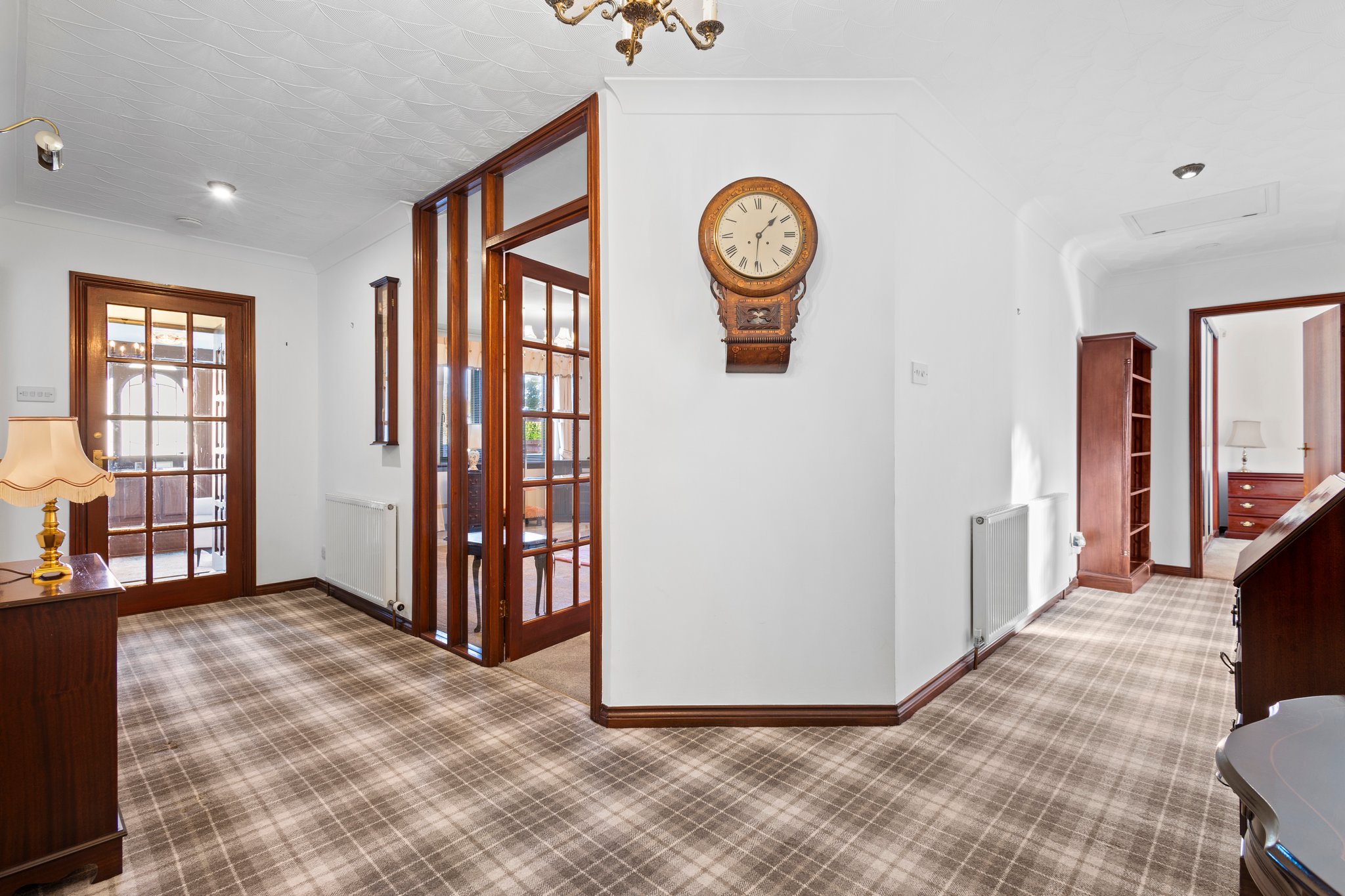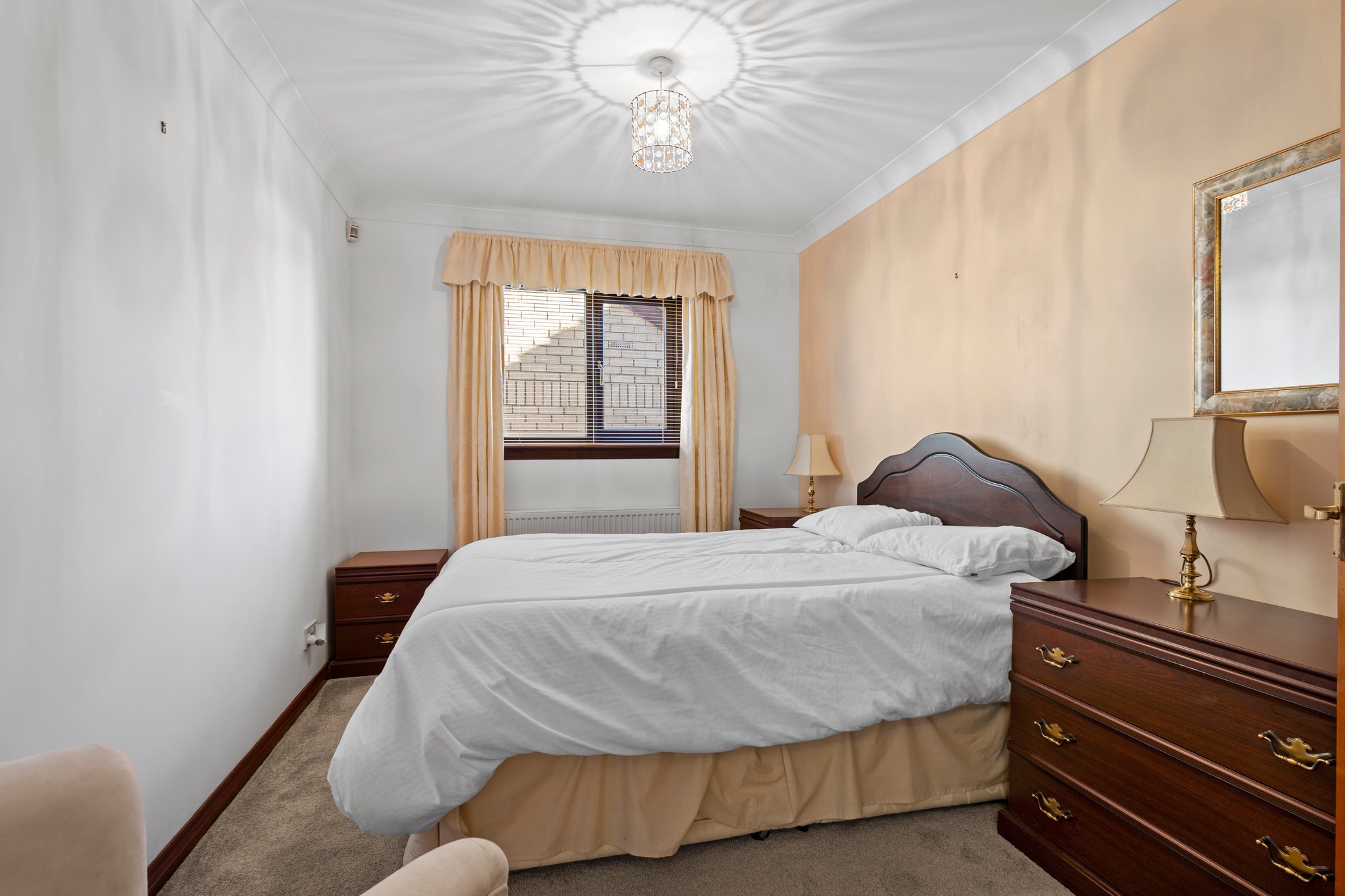 3.61m x 3.76m (11′ 10″ x 12′ 4″) Spacious second apartment complete with crisp white decor, fitted carpet, double glazed window to the side and patio doors leading to the conservatory.