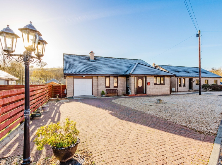 Tucked beside the River Irvine in an exclusive, charming cul de sac on the outskirts of Newmilns, this impressive three bedroom detached bungalow enjoys uninterrupted views of the river and surrounding countryside, all while remaining within easy reach of local amenities—offering an ideal blend to suit any lifestyle. Providing generous, all on one level living space and enhanced by a superb conservatory, this seldom available home features contemporary neutral décor and modern fixtures throughout. Positioned on a wraparound plot with ample off-street parking, a detached garage, and beautifully landscaped gardens, it truly ticks every box and is sure to impress even the most discerning buyer.