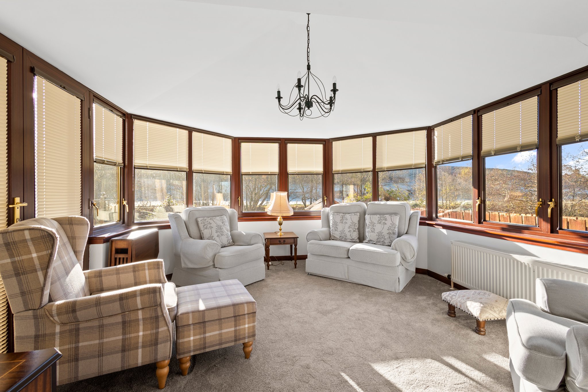3.61m x 4.19m (11′ 10″ x 13′ 9″) Superb rear facing conservatory boasting double glazed windows to all aspects allowing for far reaching uninterrupted riverside and countryside views, neutral decor, fitted carpet and a door leading to the garden.