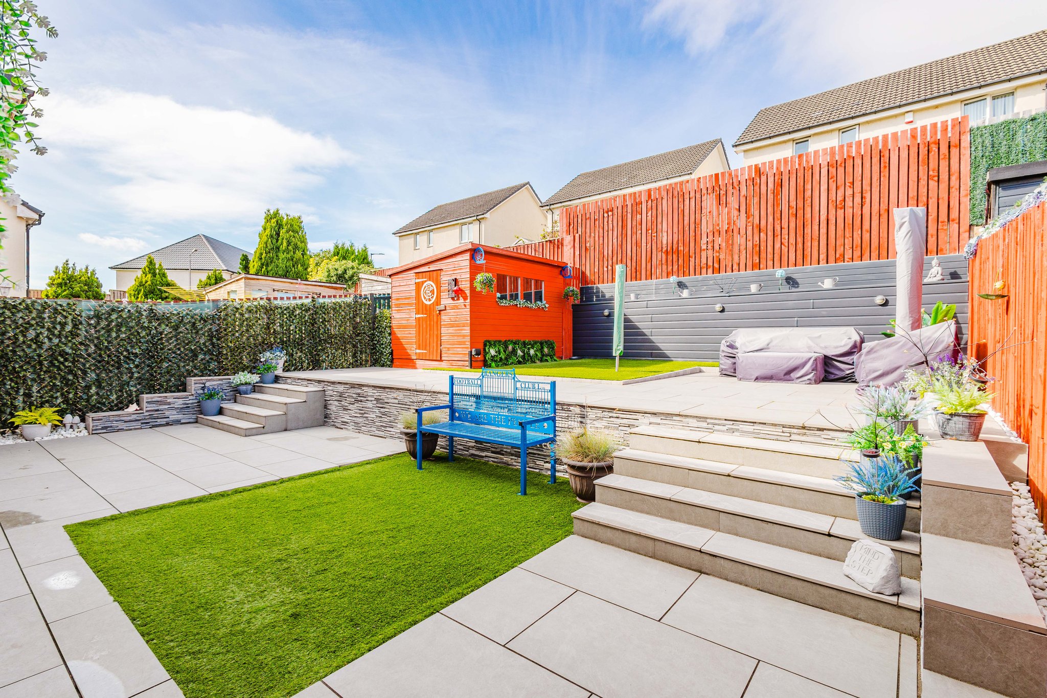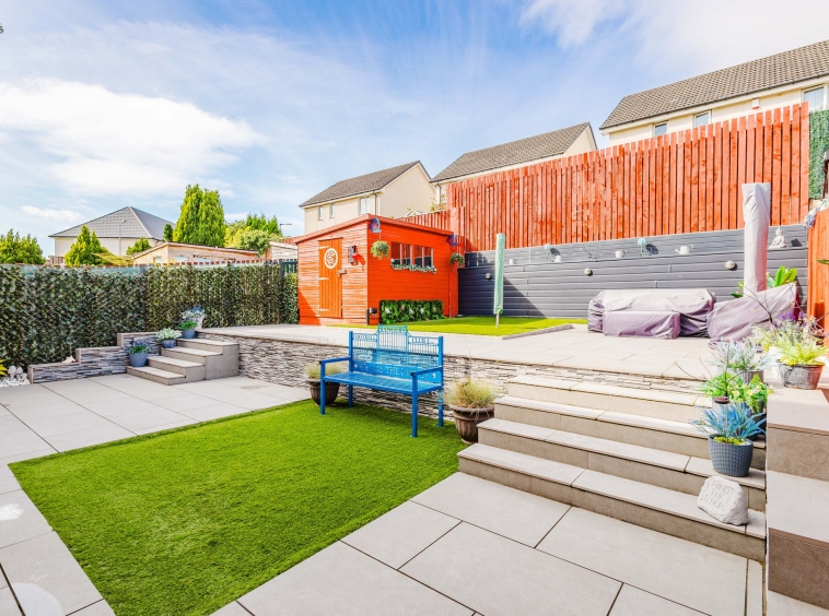 Positioned on a generous plot, this family villa boasts private garden grounds to the front and rear. To the front is a sizeable driveway providing plentiful off street parking. The intricately landscaped, split level gardens are complete with paved patio areas and artificial lawn, enclosed by fencing allowing for a safe and peaceful outdoor family space.