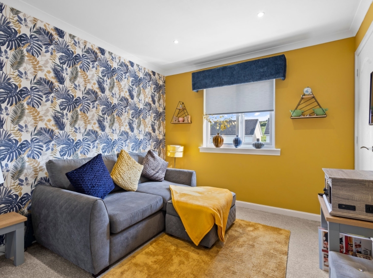 2.57m x 1.60m (8′ 5″ x 5′ 3″) The welcoming entrance hallway offers tasteful decor with fitted carpet, ceiling coving and carpeted staircase leading to the upper level. Door access to lounge/diner and ground floor bedroom.
