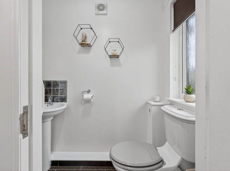 1.80m x 1.01m (5′ 11″ x 3′ 4″) Conveniently located on the lower level, the wc comprises of a two piece white suite, fresh white decor, tiled flooring and a double glazed window to the front.