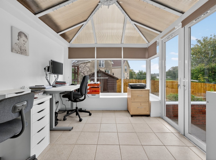 2.89m x 2.78m (9′ 6″ x 9′ 1″) Superb rear facing conservatory providing additional living space, fully double glazed to all aspects providing open garden views, neutral decor, tiled flooring and double doors leading to the rear garden.