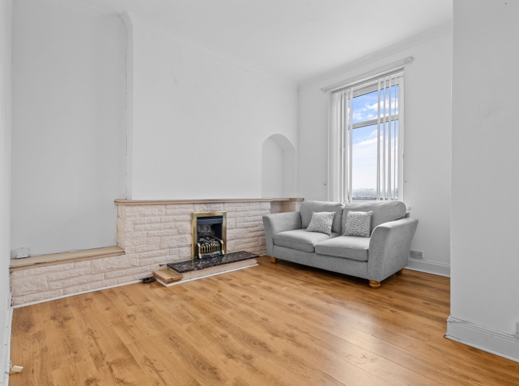 3.91m x 4.70m (12′ 10″ x 15′ 5″) Generous main apartment boasting neutral decor, ceiling coving, feature fireplace, laminate flooring, door access to the kitchen and a double glazed window to the rear.