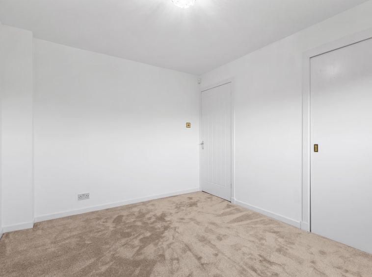 2.91m x 2.75m (9′ 7″ x 9′ 0″) Double bedroom, featuring modern decor, double fitted wardrobes, fitted carpet, double glazed window to the side.