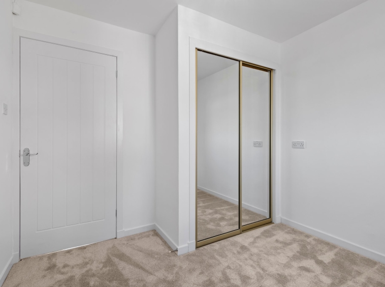 3.6m x 2.97m (11′ 10″ x 9′ 9″) Double bedroom featuring fresh modern decor, double fitted wardrobes, fitted carpet, double glazed window to rear.