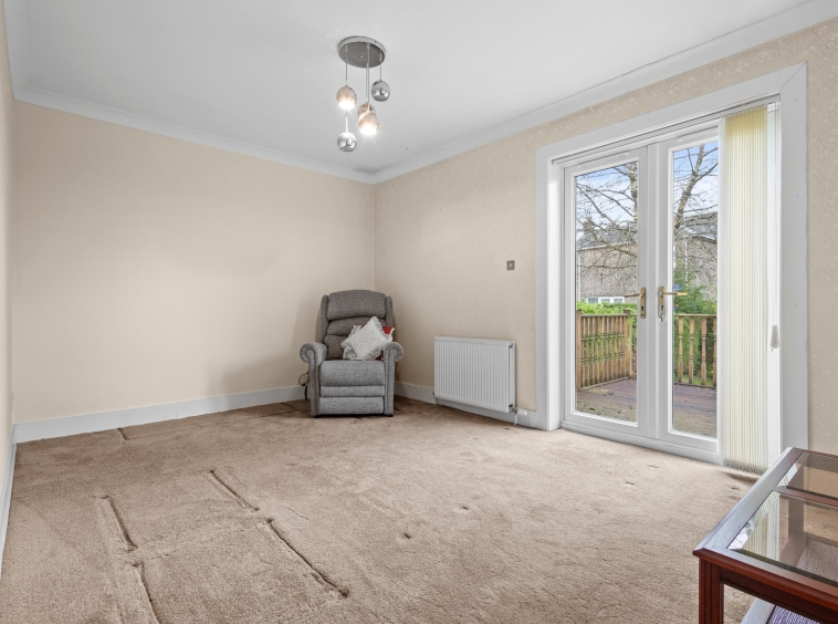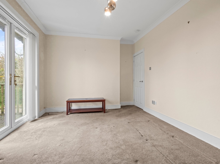 3.17m x 4.84m (10′ 5″ x 15′ 11″) Generously proportioned main apartment offering neutral decor, ceiling coving, fitted carpet and double glazed French doors overlooking and giving access to the rear garden.