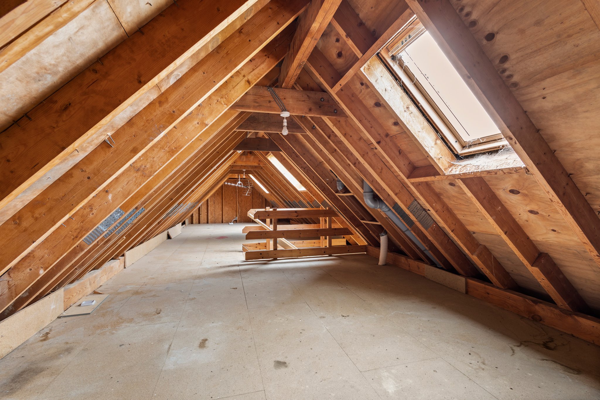 13.29m x 4.55m (43′ 7″ x 14′ 11″) Extensive floored loft with a staircase providing access, boasts plentiful storage space.