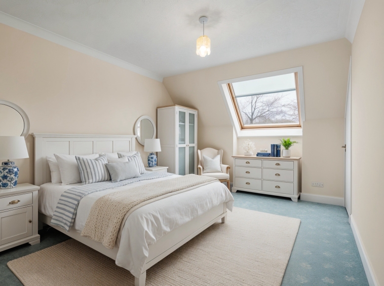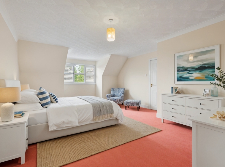 4.77m x 2.88m (15′ 8″ x 9′ 5″) Bedroom four is a spacious apartment that could be utilised as a home office boasting soft decor, practical storage cupboard, fitted carpet and a double glazed window to the rear. Access is given via a staircase to the floored loft.