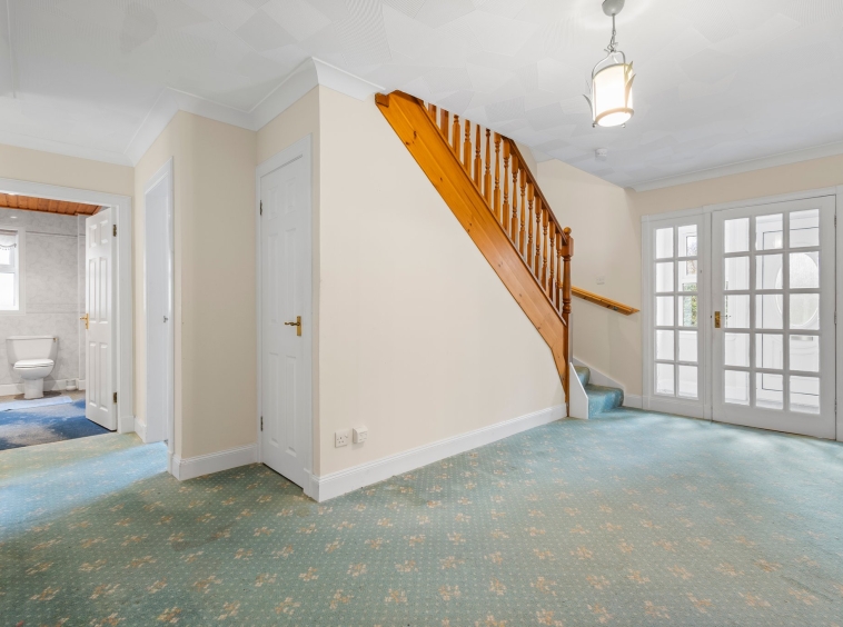 4.97m x 3.59m (16′ 4″ x 11′ 9″) The spacious hallway offers soft decor, ceiling coving, fitted carpet and provides access to the lounge, kitchen, utility, bedroom and bathroom.