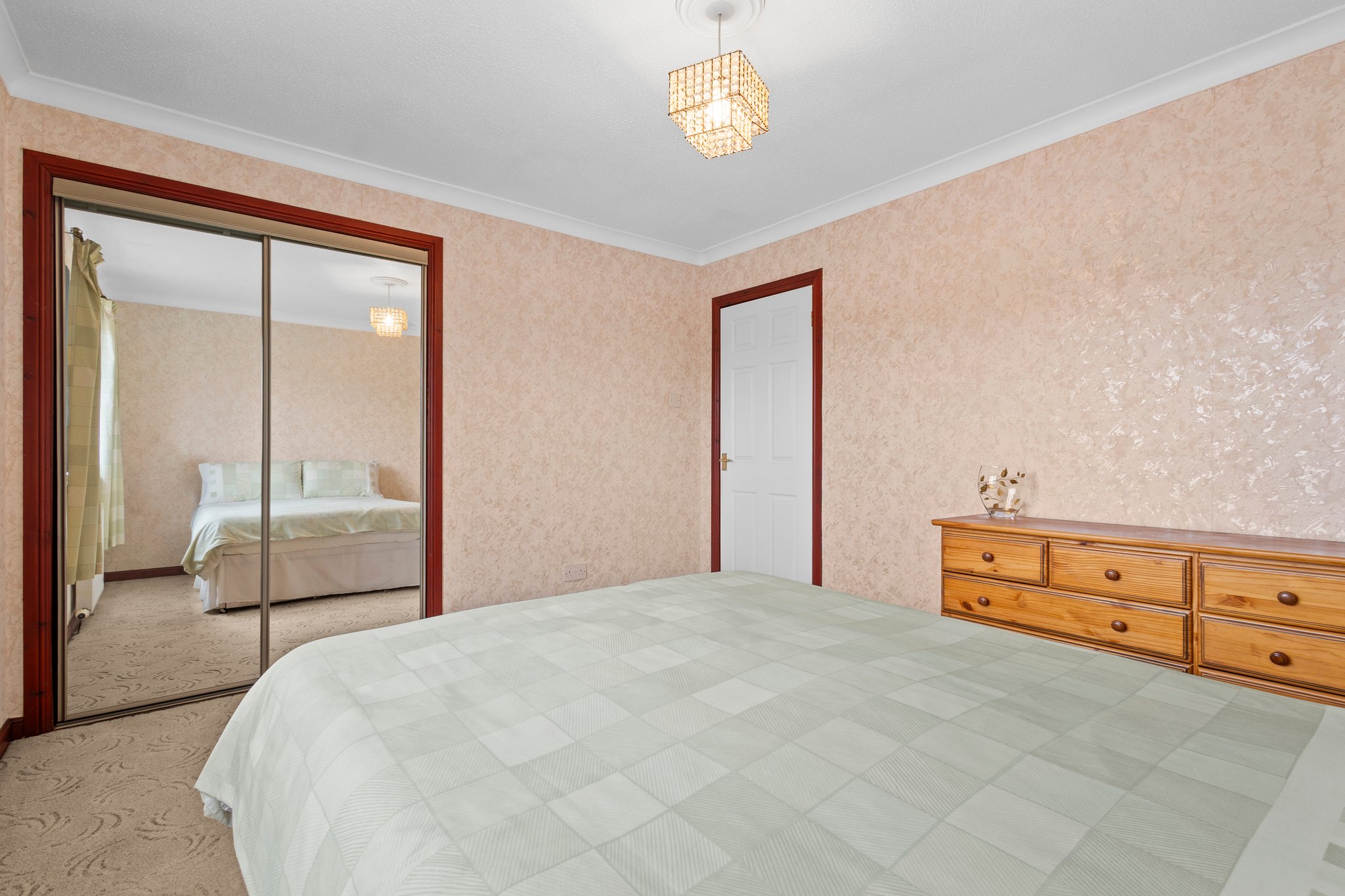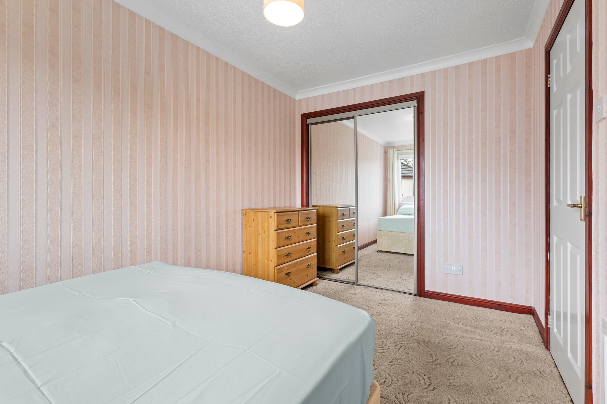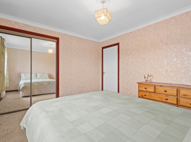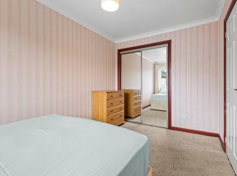 4.07m x 2.41m (13′ 4″ x 7′ 11″) The second double bedroom is rear facing with a double glazed window overlooking the gardens, soft decor, fitted carpet and double door fitted wardrobes.