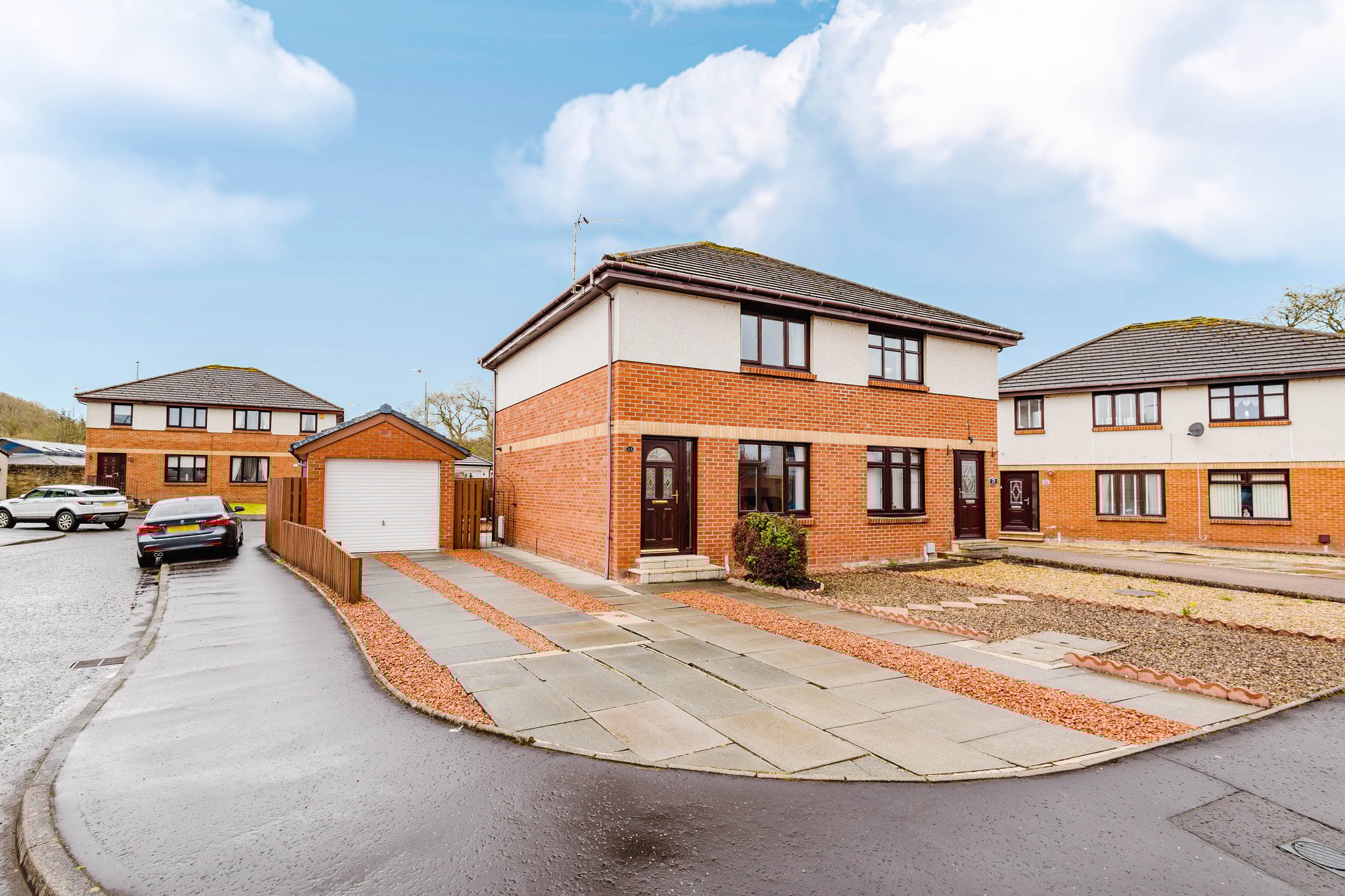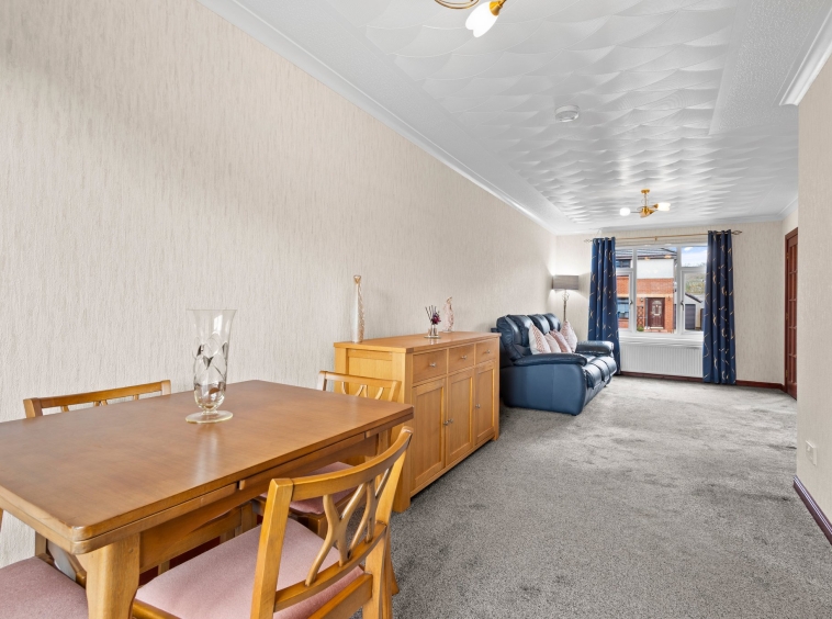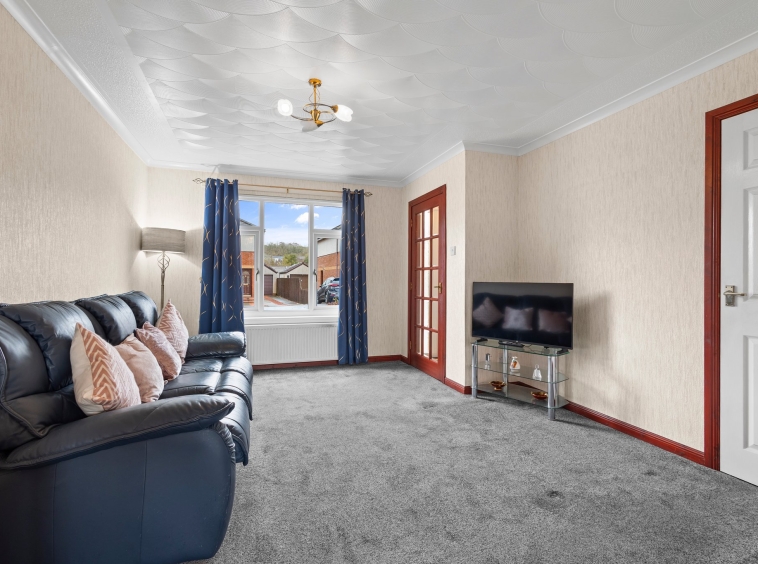 Situated within a sought after cul de sac in a modern development on the outskirts of Cumnock, this charming two bedroom semi detached villa occupies a desirable corner plot with generous landscaped gardens, a private driveway, and a detached garage. Well presented throughout and lovingly maintained, the property offers spacious accommodation over two levels and is ideally suited to a wide range of buyers.