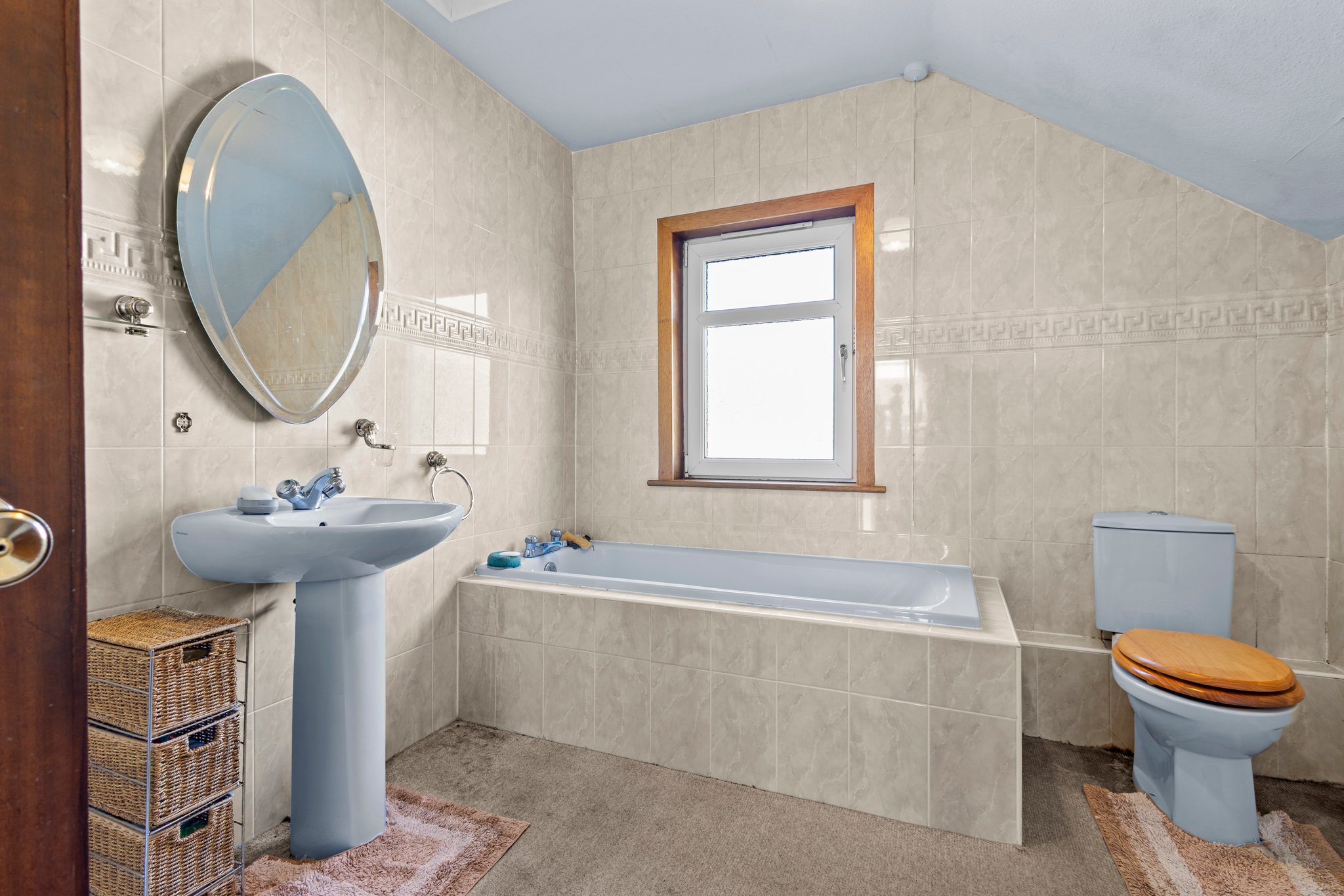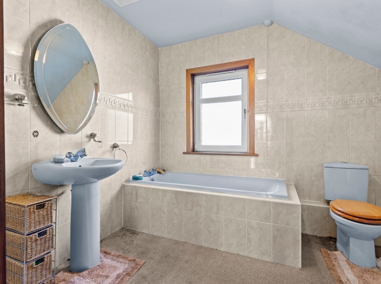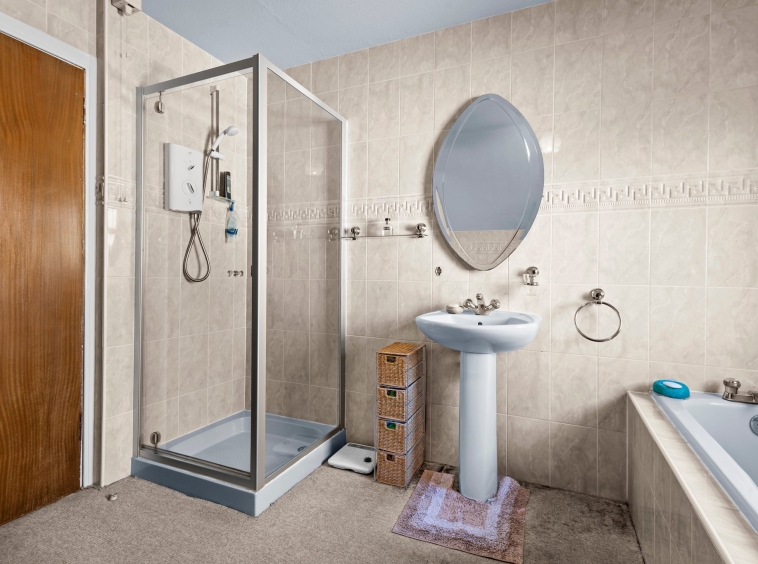 2.81m x 3.00m (9′ 3″ x 9′ 10″) Completing the accommodation is the family bathroom comprising of a wash hand basin, wc, bath, shower cubicle with electric shower, neutral decor, fitted carpet and a double glazed window to the front.