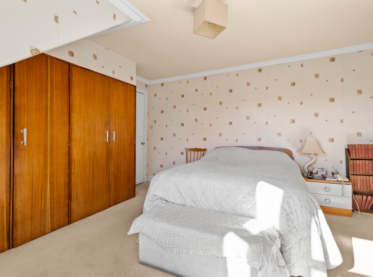 4.43m x 4.73m (14′ 6″ x 15′ 6″) The master bedroom is a generous double offering neutral decor, double fitted wardrobes, deep skirtings and ceiling cornicing, fitted carpet and a large double glazed window to the rear.