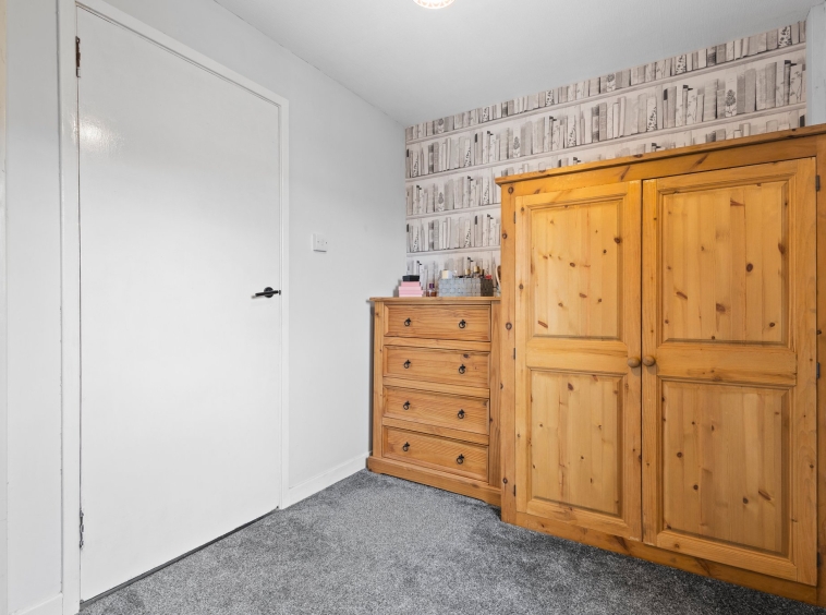 3.06m x 2m (10′ 0″ x 6′ 7″) The third bedroom is a good sized single complete, currently utilised as a dressing room, with neutral decor, fitted carpet, storage cupboard and a double glazed window to the rear.