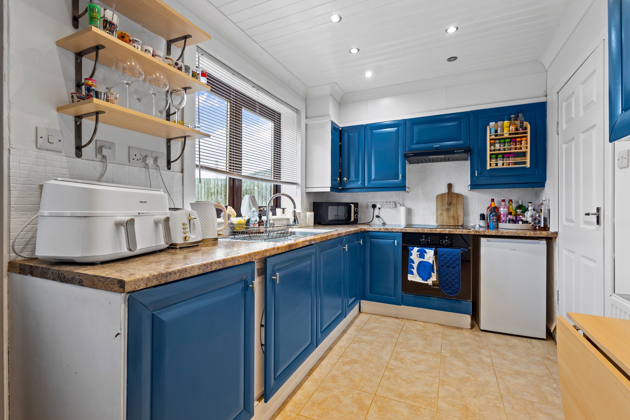 The property further benefits from low maintenance front and rear gardens, the rear is laid mostly to chips with a patio area and a garden shed. The front offers modern white chips with planters and mature shrubs.