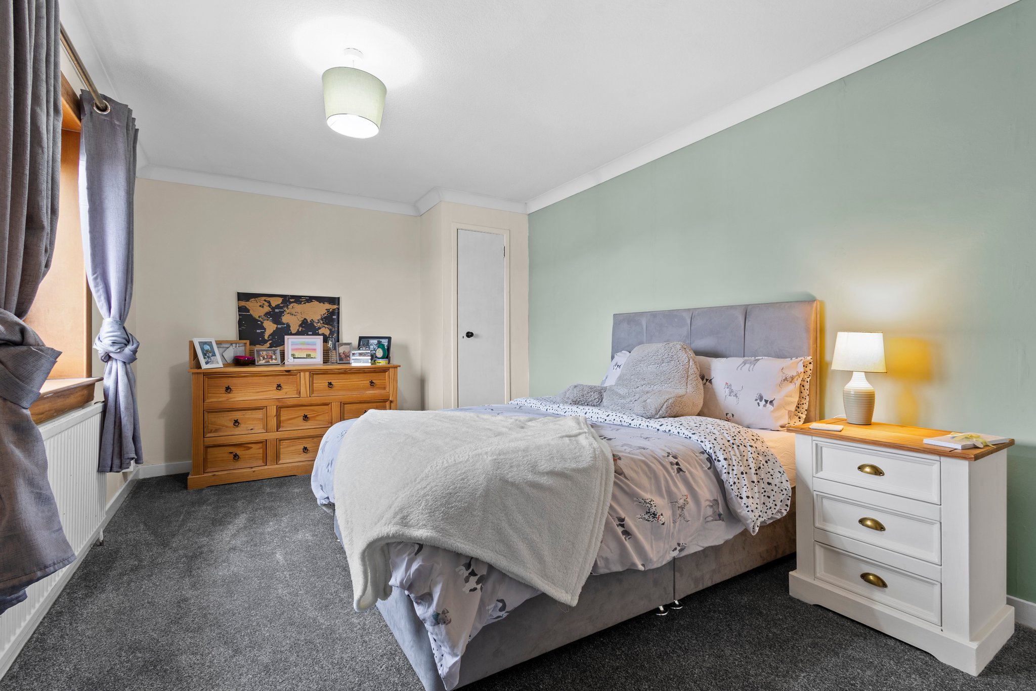 4.59m x 3.22m (15′ 1″ x 10′ 7″) Generous double bedroom with neutral decor, fitted carpet, ceiling coving storage cupboard and a double glazed window to the front.