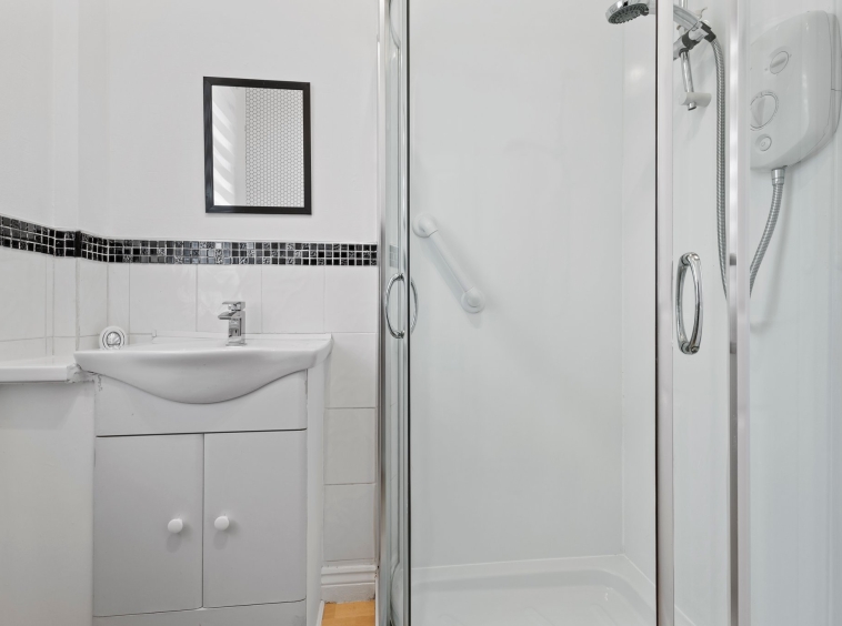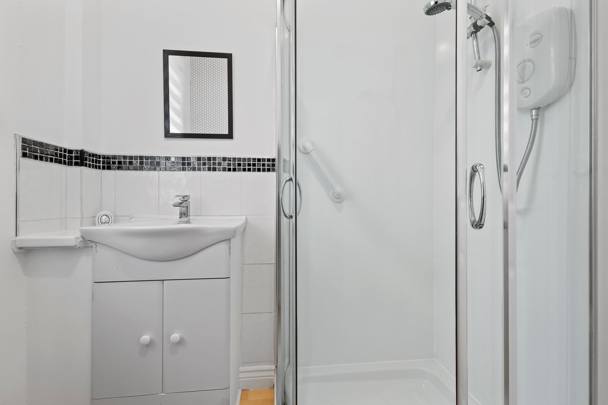 1.93m x 1.94m (6′ 4″ x 6′ 4″) Completing the accommodation is the shower room comprising of a wash hand basin with vanity, wc, shower cubicle with electric shower, neutral decor with stylish tiling and a wet wall finish around shower, laminate flooring and a double glazed window to the rear.