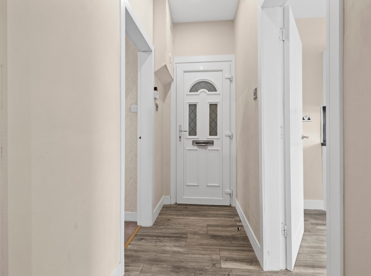 2.46m x 1.03m (8′ 1″ x 3′ 5″) Access is given to a welcoming entrance hallway offering contemporary neutral decor, practical large walk storage cupboard and laminate flooring. The hallway gives access to all apartments.