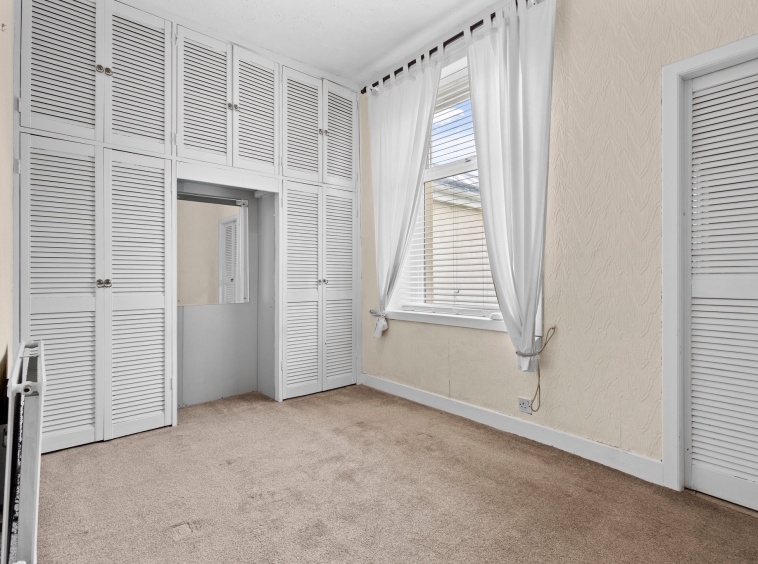3.92m x 3.35m (12′ 10″ x 11′ 0″) Spacious double bedroom with neutral decor, a selection of fitted wardrobes, a large walk in storage cupboard, fitted carpet and a double glazed window to the rear.