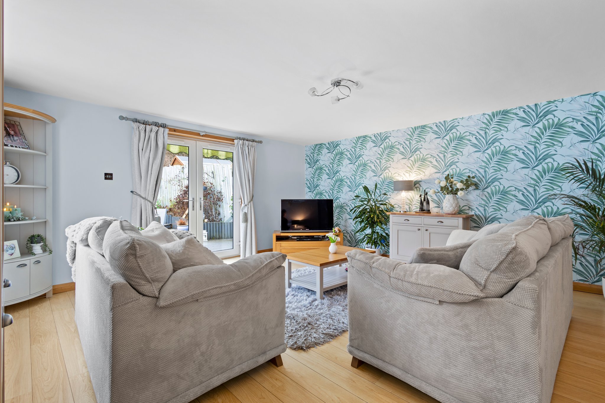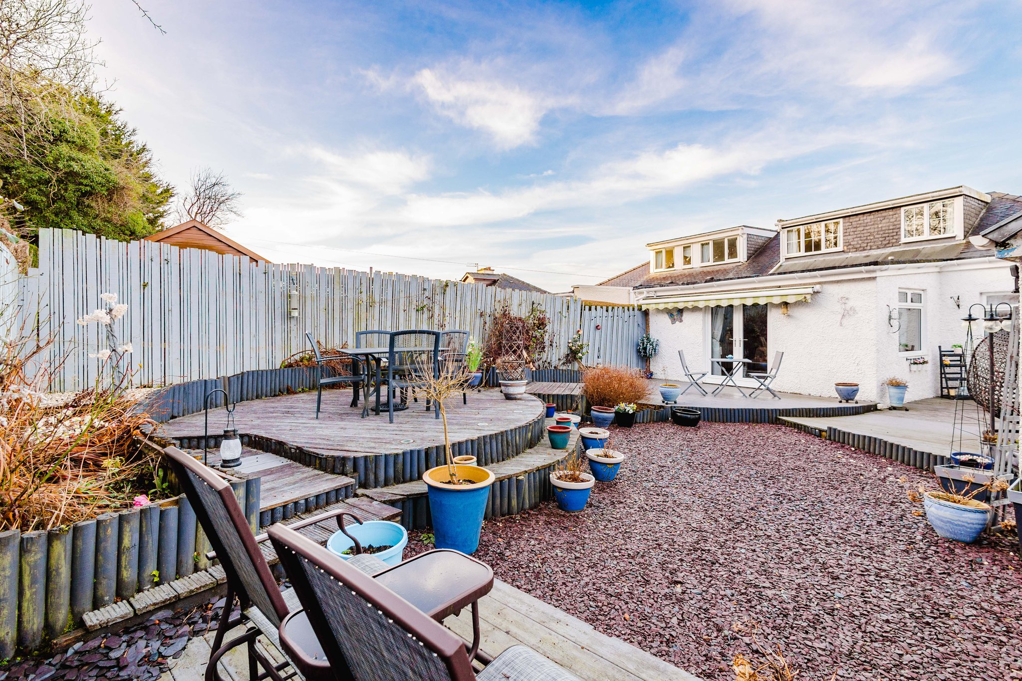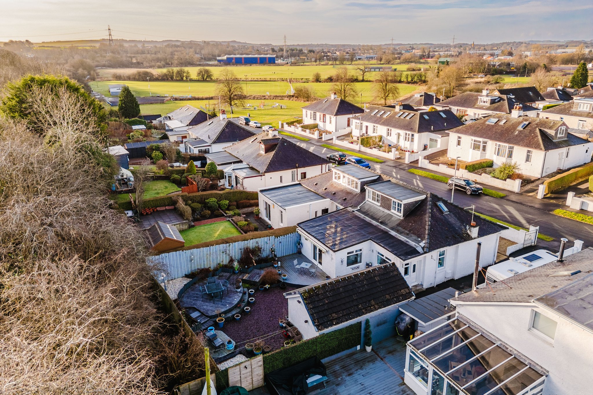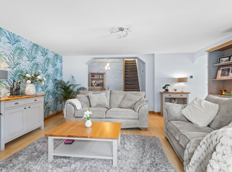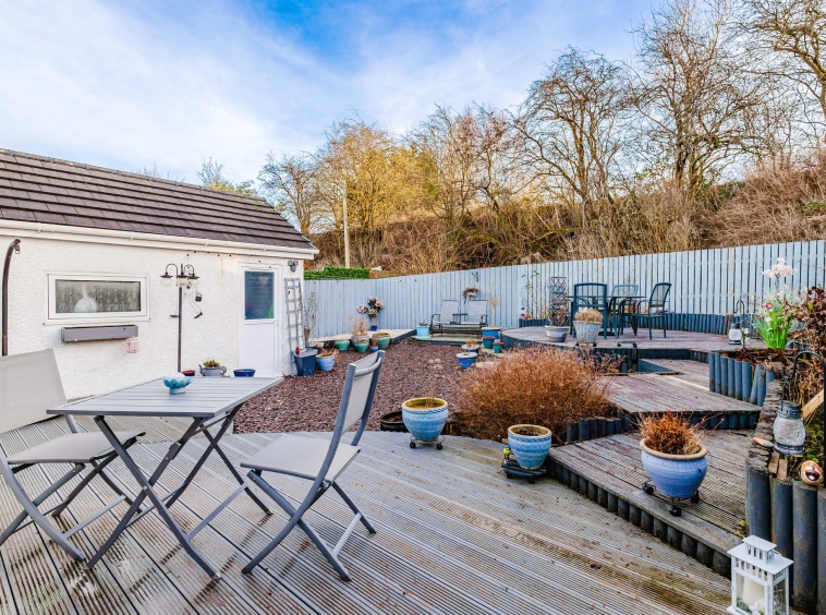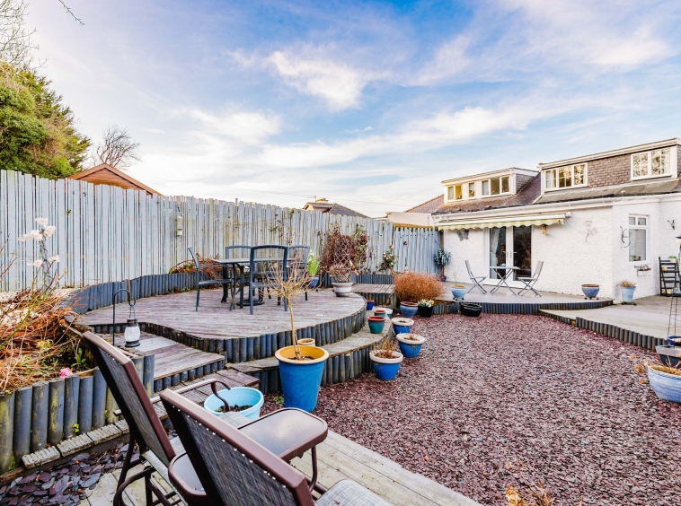 Positioned on a generous plot, this family villa provides private garden grounds to the front and rear which have been lovingly maintained by the current owners. The front gardens are laid to chips and modern paving, with a generous driveway to the side offering ample off street parking, leading to the detached garage with up and over door access. The attractive rear gardens are landscaped to offer a selection of decked patios and chipped areas, with shrubbery. Enclosed by fencing allowing for a safe and peaceful outdoor space.
