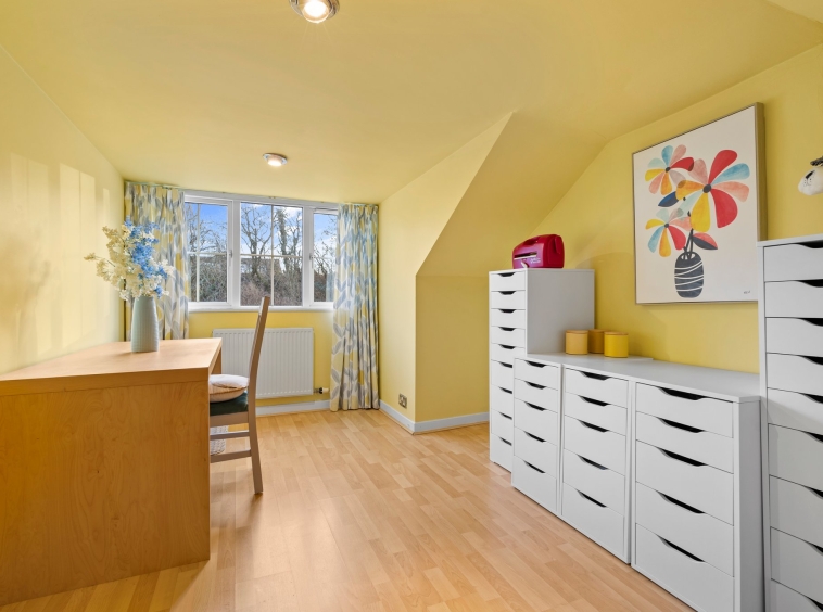 3.79m x 2.79m (12′ 5″ x 9′ 2″) A spacious bedroom with neutral decor, laminate flooring and a double glazed window to the rear. This room could be flexibly utilised as a home office.