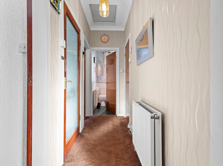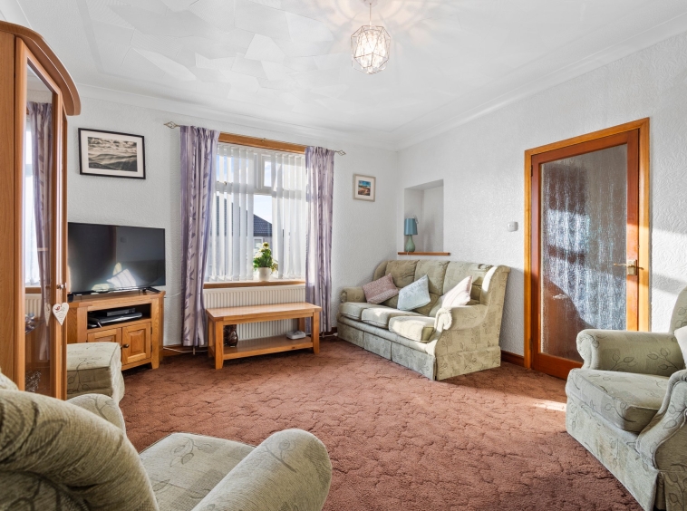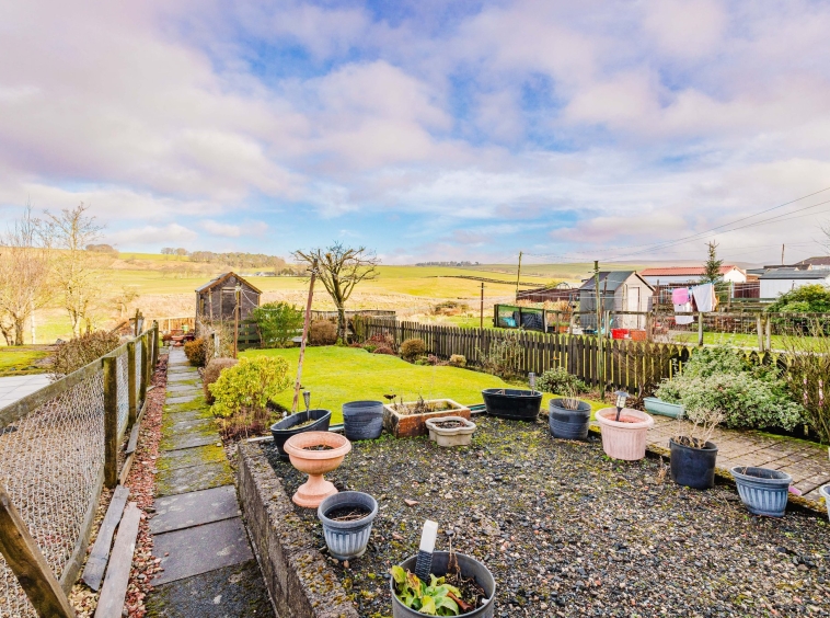 Further benefitting this property is off street parking with a drive way to side and the lovingly maintained rear garden offers two manicured lawn areas, one bordered by mature shrubbery, the other bordered by a fence and providing expansive open outlooks over the New Cumnock countryside.