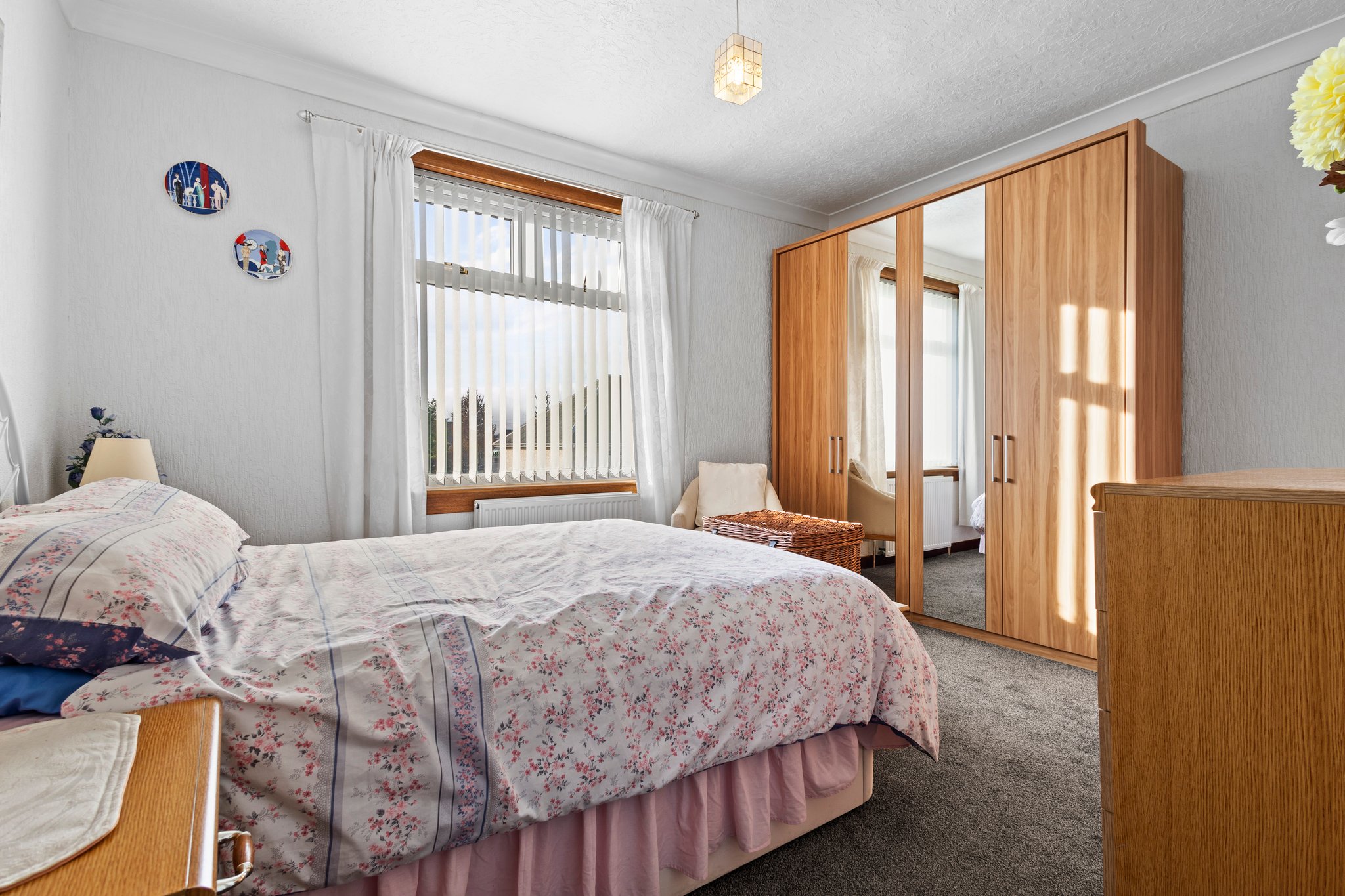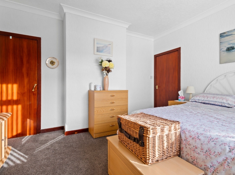 2.72m x 4.22m (8′ 11″ x 13′ 10″) Second double sized bedroom featuring neutral decor with feature wall, fitted carpet, storage cupboard and double glazed window offering open outlooks to the rear.