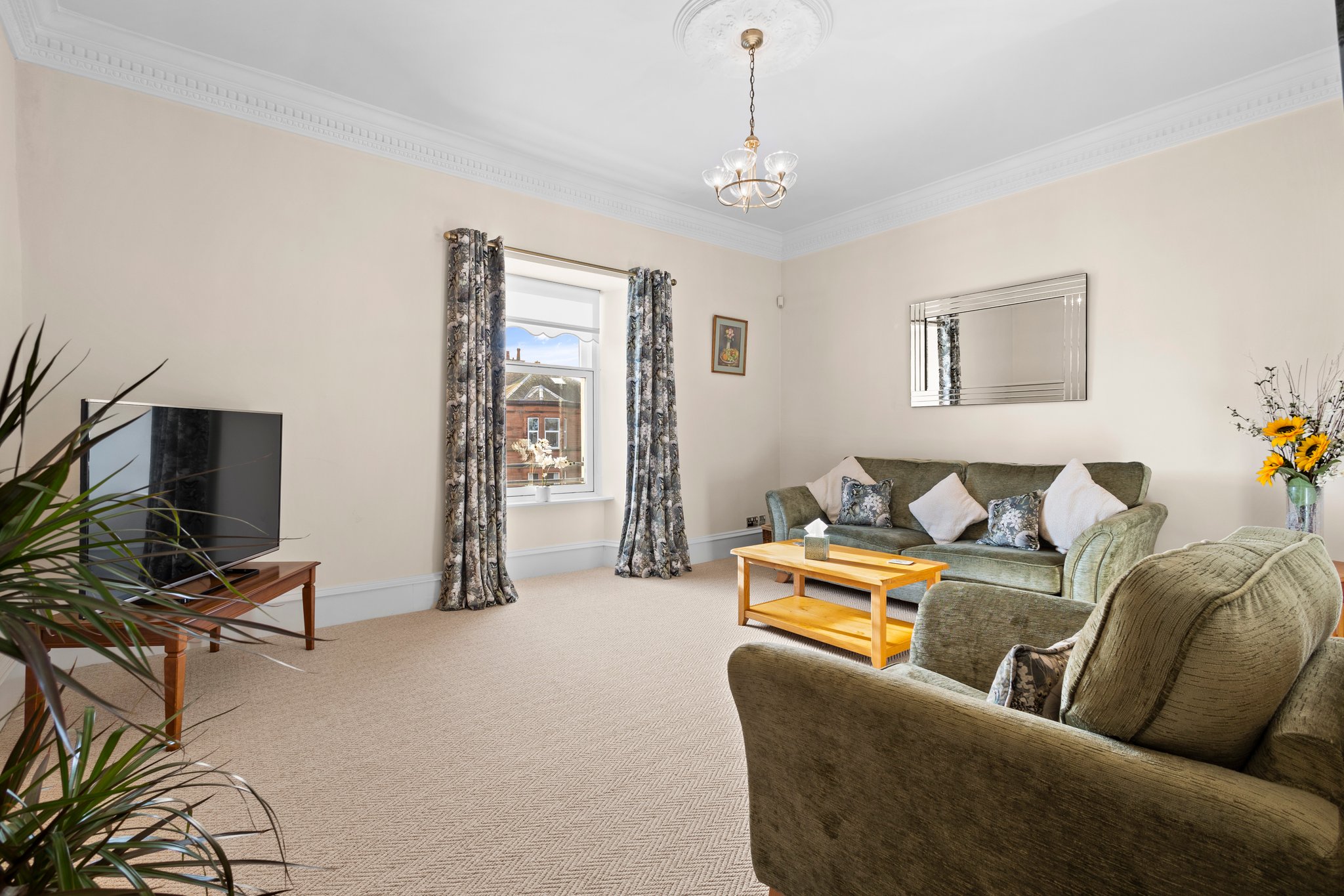 Occupying a prominent position on one of Kilmarnock’s most prestigious and highly sought after addresses, this elegant four bedroom maisonette forms part of a magnificent traditional sandstone conversion. The property offers an exceptionally generous and versatile floor plan arranged over two expansive levels, delivering beautifully proportioned accommodation ideally suited to a range of family living. Meticulously maintained and thoughtfully enhanced by the current owner, the home is presented in immaculate condition, showcasing contemporary décor, while tastefully preserving an abundance of original period features throughout.