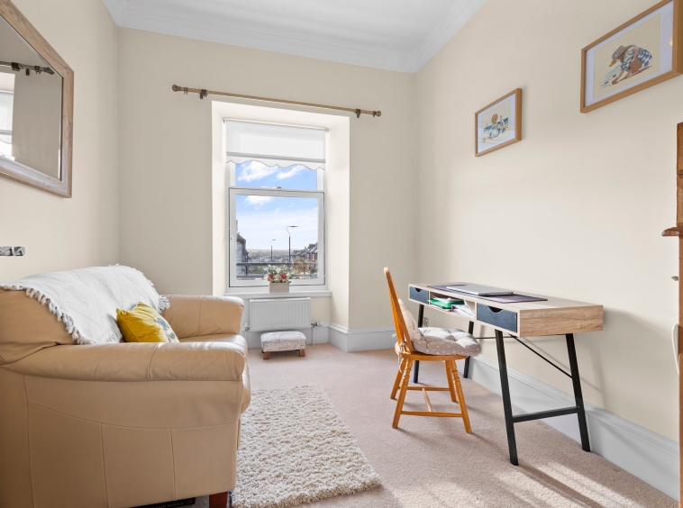 3.88m x 2.75m (12′ 9″ x 9′ 0″) A spacious apartment that could be flexibly utilised as a home office or fourth bedroom offering soft decor, fitted carpet, ceiling cornice, deep skirtings and double glazed window to the front.