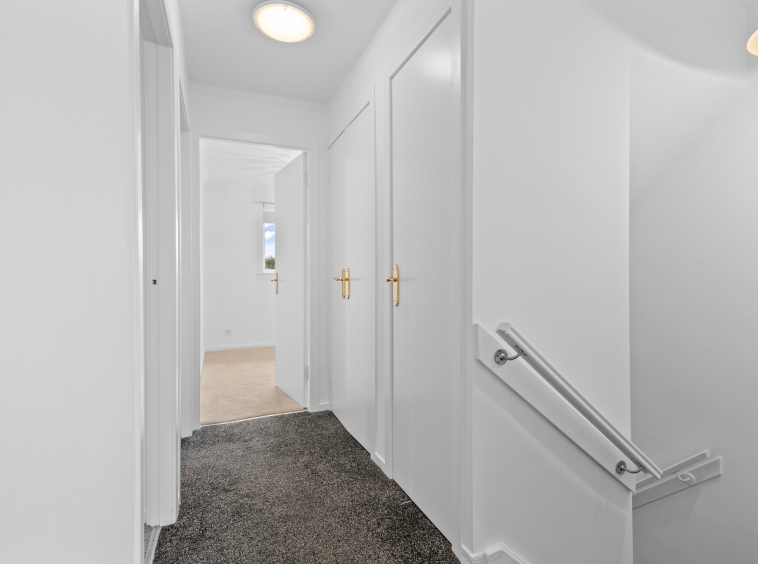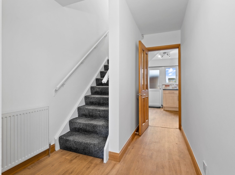 2.07m x 4.66m (6′ 9″ x 15′ 3″) Access is given to a welcoming entrance hallway boasting modern decor, practical large storage cupboard and vinyl flooring. The hallway gives access to lounge, kitchen and a carpeted staircase leads to the upper level.