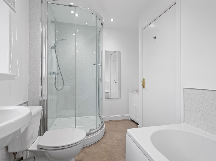 3.42m x 2.26m (11′ 3″ x 7′ 5″) Completing the accommodation is the family bathroom comprising of a wash hand basin, wc, bath, shower cubicle, modern decor with a stylish wet wall finish around the shower, heated towel rail, ceiling spotlights, vinyl flooring and a double glazed window to the rear.