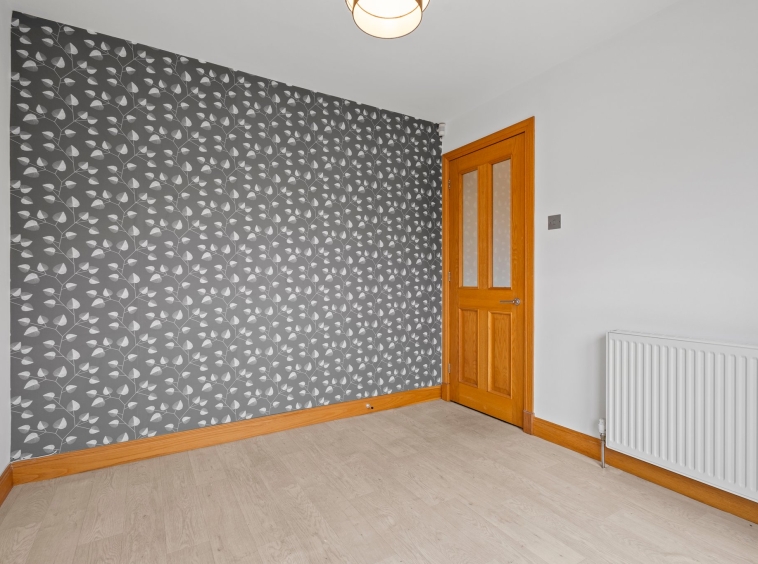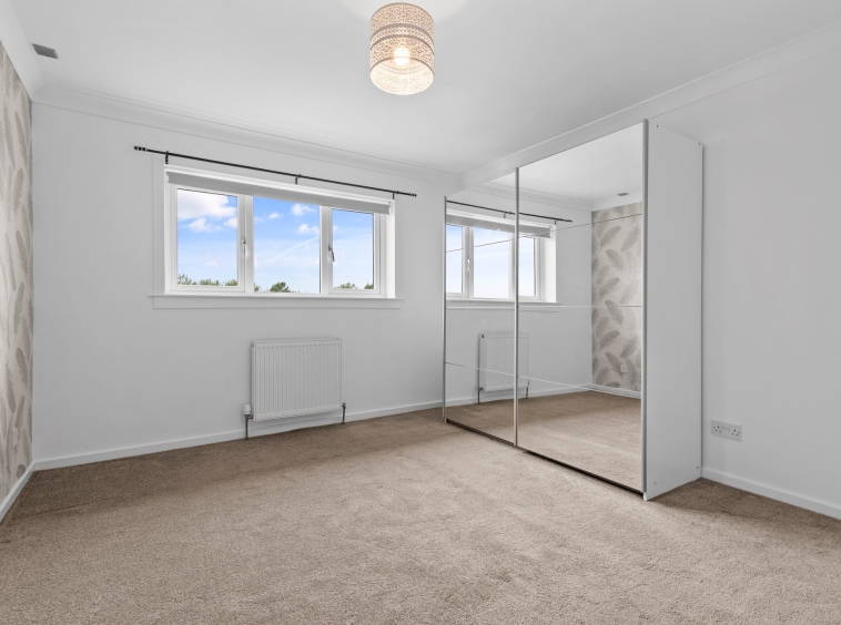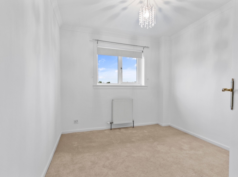 2.64m x 2.89m (8′ 8″ x 9′ 6″) Bedroom three is a good size with modern decor, ceiling coving, fitted carpet and a double glazed window to the front.