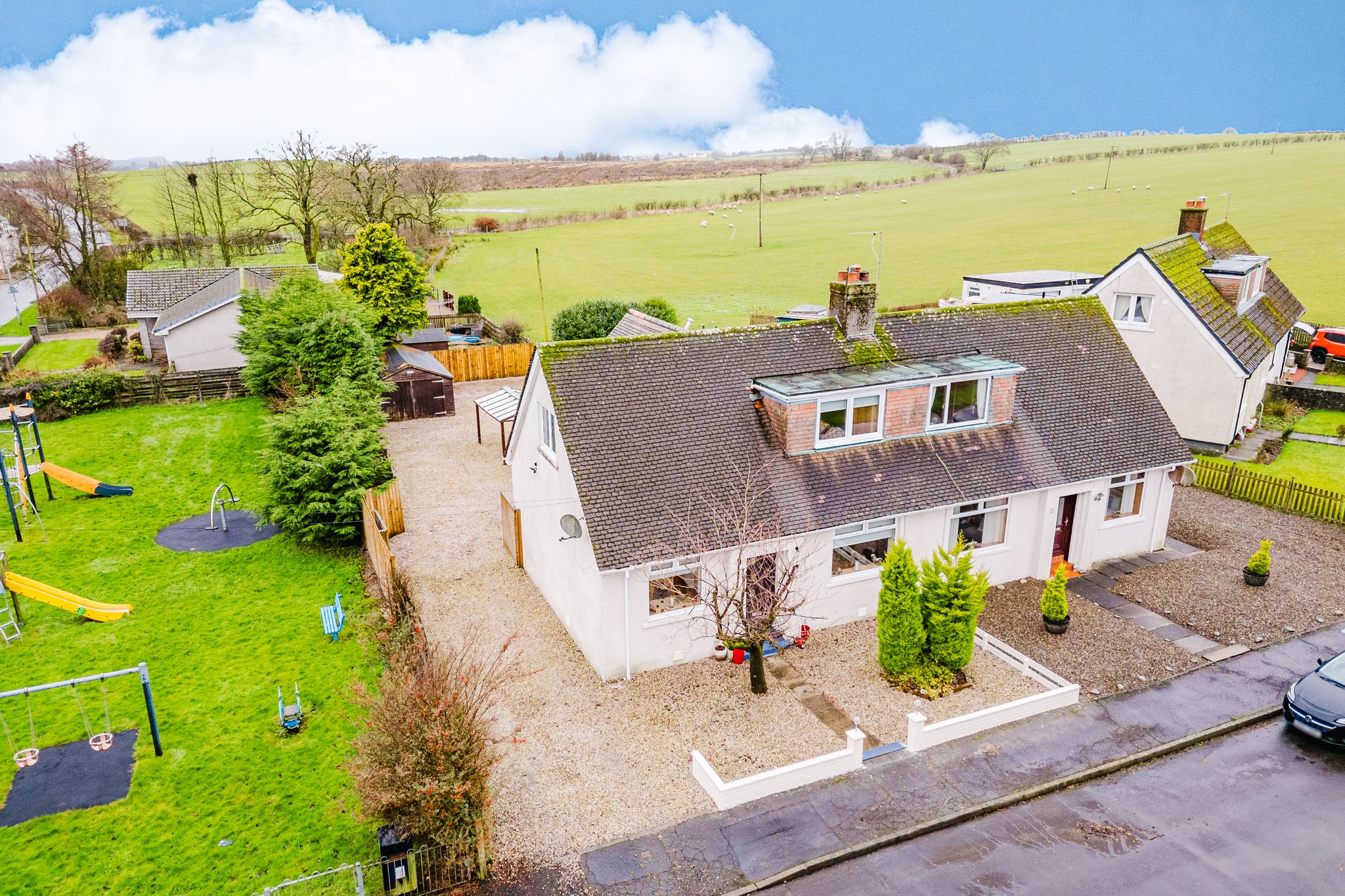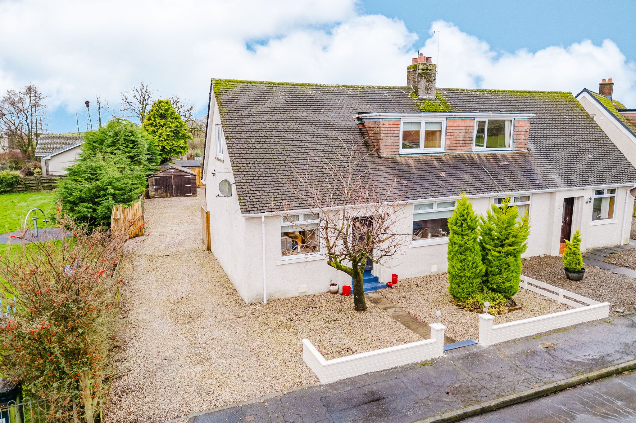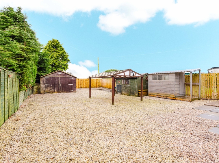 Set on an extensive plot this property boasts beautifully presented private gardens, the front garden is fully laid to chip with mature shrubbery and a large chipped driveway to the side allowing for ample off street parking and leading to the rear. The rear garden is complete with a large area laid to chips.