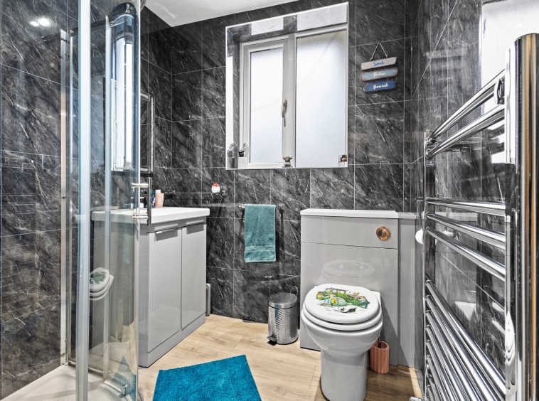 1.39m x 1.50m (4′ 7″ x 4′ 11″) Conveniently located on the lower level comprising of a wash hand basin, wc, neutral decor, laminate flooring and a double glazed window to the rear.