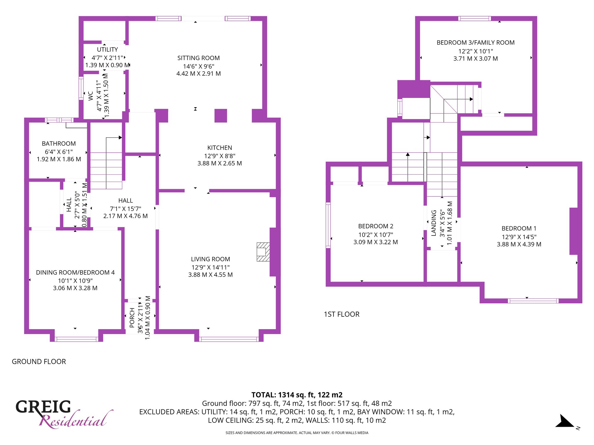 3.88m x 4.39m (12′ 9″ x 14′ 5″) The master bedroom is an impressive double boasting neutral decor, fitted carpet and a double glazed window to the front.