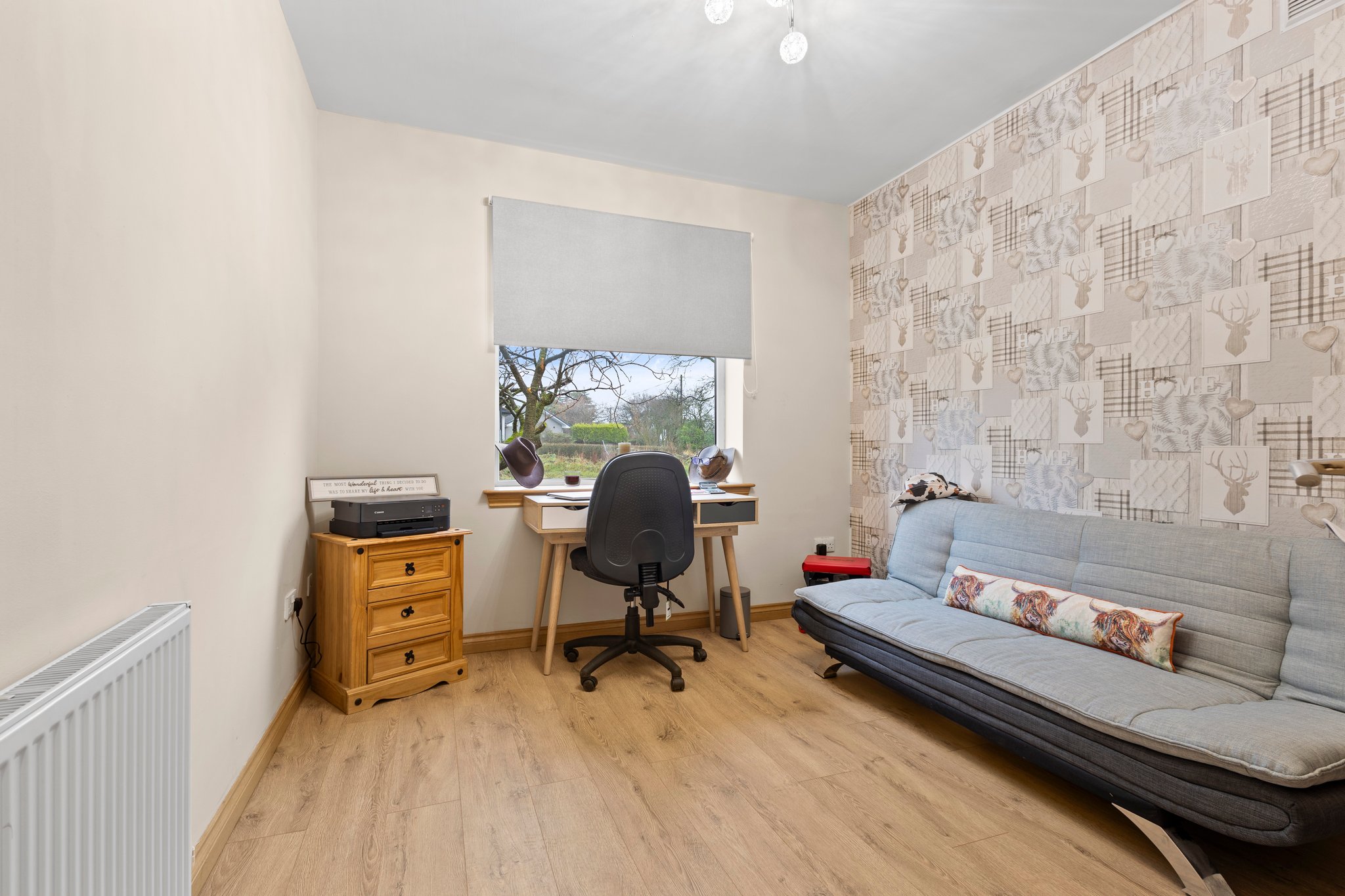Nestled within a quiet cul de sac in the idyllic semi rural village of Waterside, this exceptional five apartment semi detached villa represents the very best in modern family living. Offering a flexible layout across two levels, the property provides the perfect balance between contemporary comfort and adaptable space, allowing it to meet the needs of a wide variety of lifestyles. Finished in neutral, modern décor and enhanced by high quality fixtures and fittings throughout, this rarely available home is presented in walk-in condition. Occupying a generous plot, it further benefits from ample off street parking, a garage, and spacious private gardens surrounded by greenery and mature outlooks.